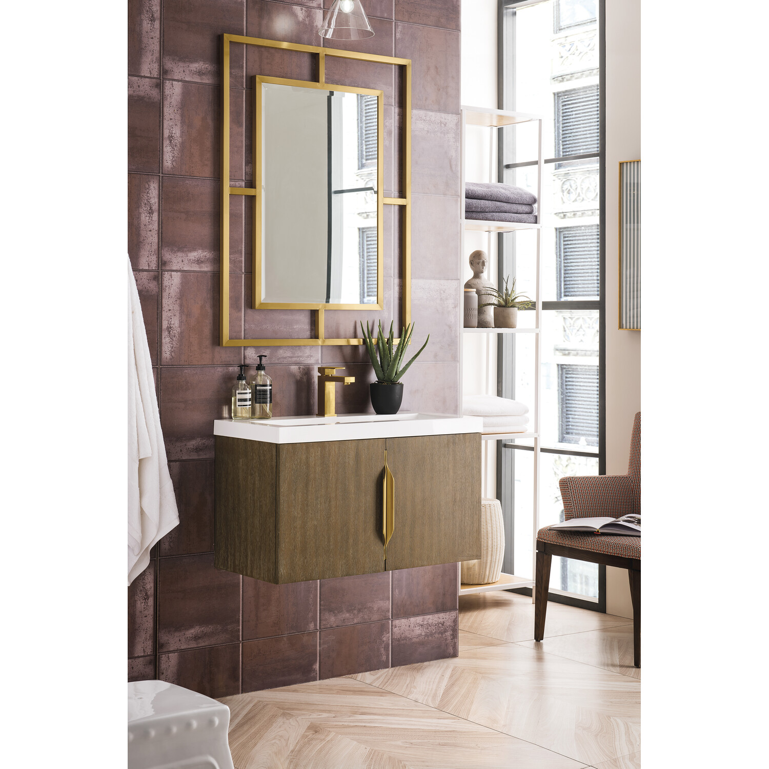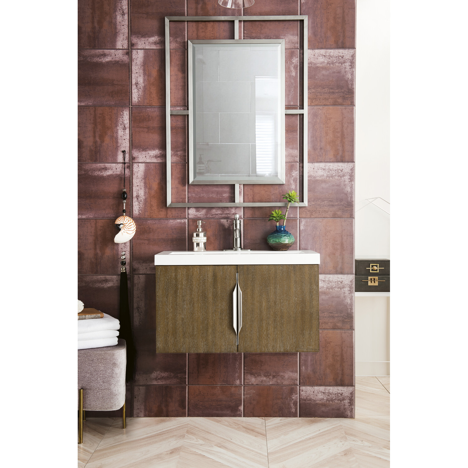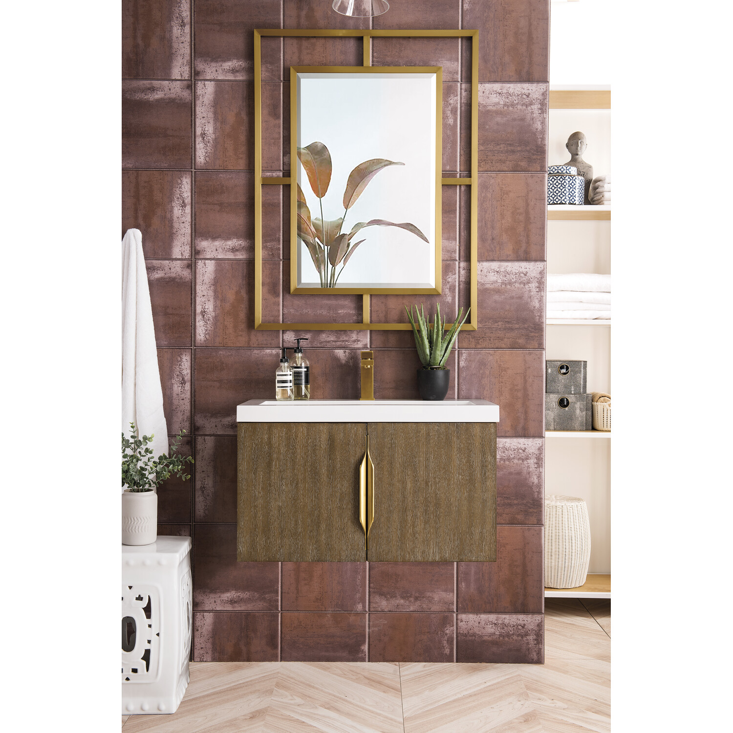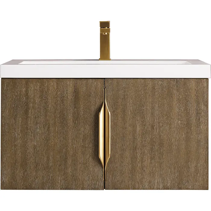 James Martin Columbia 31.5 inch Single Vanity, Latte Oak w/ White Glossy Composite Stone Top, 840108963643, 883-V31.5-LO-WG