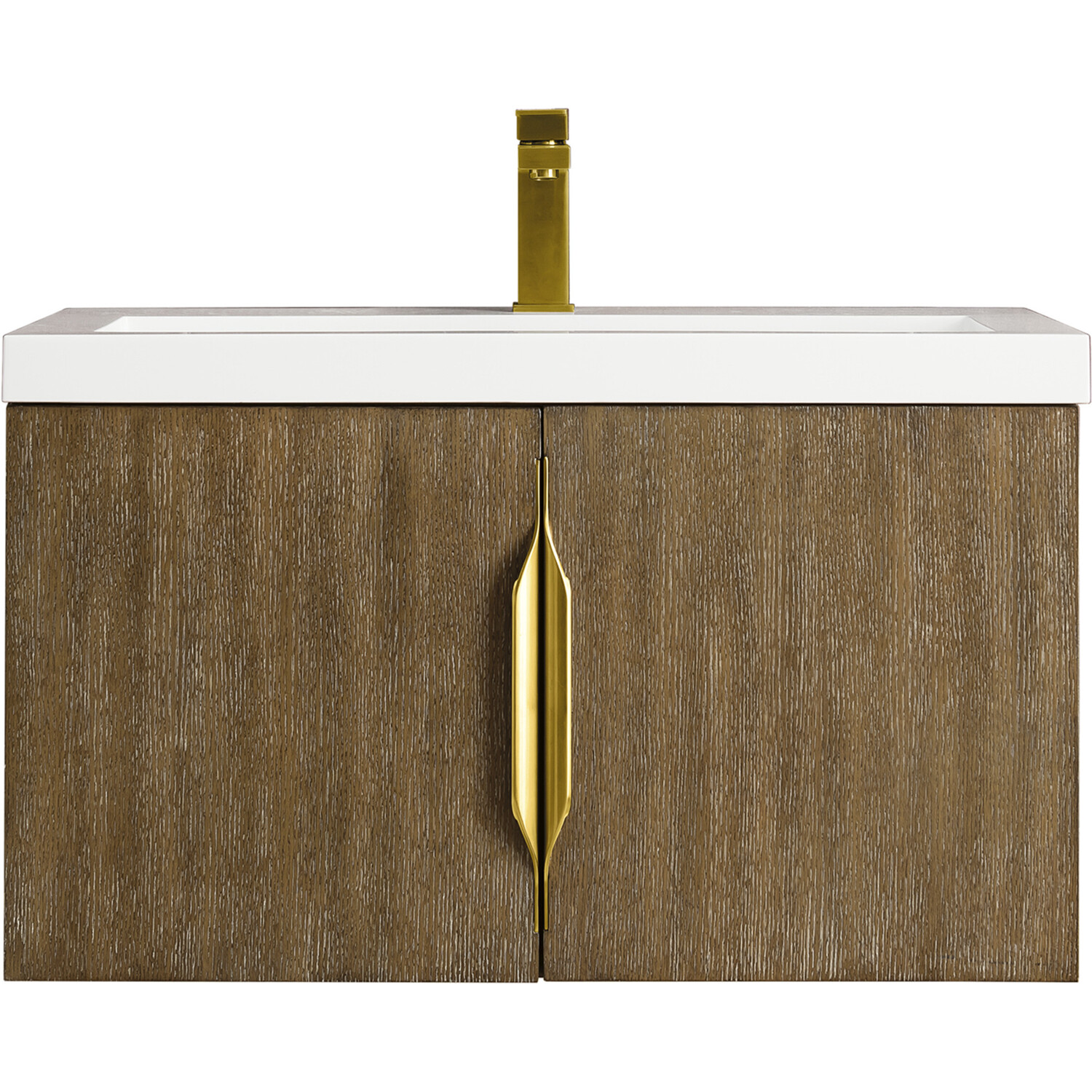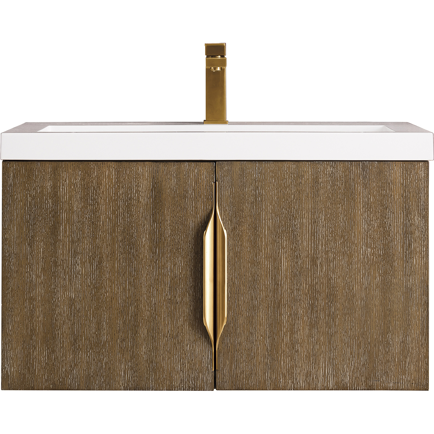 Add a fresh, contemporary touch to your bathroom with the elegant 31.5" Columbia Single Vanity by James Martin Vanities. Includes two soft-closing cabinet doors in a lovely latte oak look, this stylish bathroom cabinet features clean lines and a simple elegant look. The door opens to an under-sink storage space with one adjustable shelf that will allow you to store your bathroom essentials. The beautiful Brushed Nickel hardware is included, giving this cabinet the perfect finishing touch. The cabinet is finished inside and out with a premium finish for superior moisture and UV resistance. This versatile cabinet includes an integrated White Glossy Composite top that is pre-drilled for your convenience.Composite stone integrated sink top in White GlossySolid plywood with Red Oak Veneers120 Volt UL rated electrical component with two electrical and two USB (2.0) outletsTwo doorsDrawer bottoms are lined with our signature brushed aluminum laminate.Discover elegance redefined with the Columbia Vanity Collection by James Martin Vanities. A testament to modern luxury, this collection brings a transformative touch to your bathroom space. With a choice of three cabinet finishes, each piece in the Columbia collection is a blend of minimalist aesthetics and functional brilliance, featuring sleek, clean lines and sculpted hardware in three metal finish options. Whether you prefer a striking, free-standing statement piece or a sleek, space-saving wall-mounted design, the Columbia collection caters to your unique style. Its innovative installation options, including an optional metal base, ensure a seamless fit into any bathroom layout. The beautiful yet durable composite stone integrated sinktop is impact-resistant with an antibacterial nano-coat surface."1 year warranty against manufacturer's defects. We will repair or replace any defective product, if the product is defective in material or workmanship at our discretion. No warranty is expressed or implied regarding damages resulting from consumer misuse.
