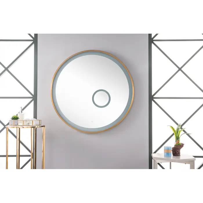 Create the perfect area for getting ready under the light of this Radiance 36" mirror collection by James Martin Vanities. Featuring a sleek design with a Brushed Gold tone frame, this mirror accentuates your contemporary decor beautifully. The stainless-steel frame construction offers sturdy support to the LED lighted mirror for enhanced sturdiness and durability. Use the touch sensor near the bottom of the mirror to turn the light on and off or adjust the brightness level to suit the lighting in your bathroom or bedroom.Stainless steel and LED perimeter; one 3x magnification inset mirrorLED backlit; Lighting color temperature: 4000K; UL Rated electrical supply 110VPremium quality metal panel for hanging1 year warranty against manufacturer's defects. We will repair or replace any defective product, if the product is defective in material or workmanship at our discretion. No warranty is expressed or implied regarding damages resulting from consumer misuse.