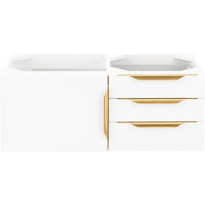 The Columbia 36" Glossy White Single Vanity Cabinet offers maximum storage with one soft-closing door and three soft-closing drawers. This cabinet includes premium features such as one solid bamboo drawer organizer and one 120 Volt UL Rated electrical component with two electrical and two USB outlets. Cabinet includes Matte Black door and drawer pulls. This wall-mounted vanity includes heavy duty mounting brackets to create a modern look.Solid plywood120 Volt UL rated electrical component with two electrical and two USB (2.0) outletsOne door, three drawersDrawer bottoms are lined with our signature brushed aluminum laminate.Solid bamboo in-drawer organizerStainless Steel Hardware in Radiant Gold FinishDiscover elegance redefined with the Columbia Vanity Collection by James Martin Vanities. A testament to modern luxury, this collection brings a transformative touch to your bathroom space. With a choice of three cabinet finishes, each piece in the Columbia collection is a blend of minimalist aesthetics and functional brilliance, featuring sleek, clean lines and sculpted hardware in three metal finish options. Whether you prefer a striking, free-standing statement piece or a sleek, space-saving wall-mounted design, the Columbia collection caters to your unique style. Its innovative installation options, including an optional metal base, ensure a seamless fit into any bathroom layout. The beautiful yet durable composite stone integrated sinktop is impact-resistant with an antibacterial nano-coat surface."1 year warranty against manufacturer's defects. We will repair or replace any defective product, if the product is defective in material or workmanship at our discretion. No warranty is expressed or implied regarding damages resulting from consumer misuse.