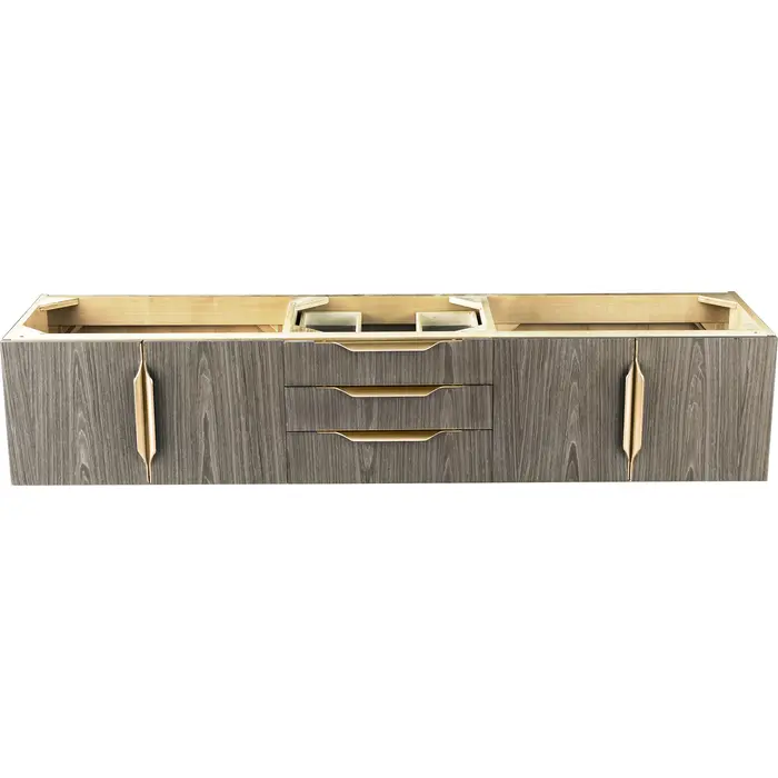 James Martin Columbia 72 inch Double Wall Mount Vanity Cabinet, Ash Gray, Radiant Gold, 840108965029, 983-V72D-W-AG-G