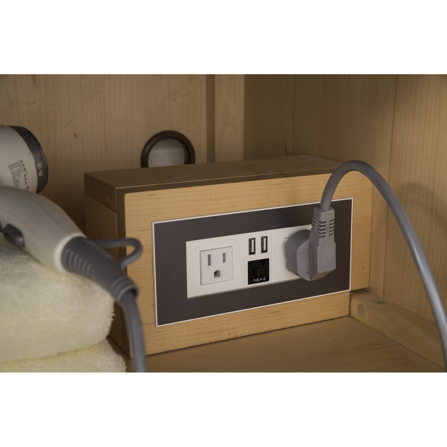 The Columbia 72" Ash Gray Double Vanity offers maximum storage with two soft-closing doors and three soft-closing drawers. This cabinet includes premium features such as one solid bamboo drawer organizer and one 120 Volt UL Rated electrical component with two electrical and two USB outlets. Cabinet includes Radiant Gold door and drawer pulls. Glossy White Composite Stone countertop with integrated wide, angled trough-style sink. This wall-mounted vanity includes heavy duty mounting brackets to create a modern look.Composite stone integrated sink top in Glossy WhiteSolid plywood with engineered veneer meticulously created using real wood fibers carefully selected and dyed to create this unique pattern and warm gray color combination120 Volt UL rated electrical component with two electrical and two USB (2.0) outletsFour doors, three drawersDrawer bottoms are lined with our signature brushed aluminum laminate.Solid bamboo in-drawer organizerStainless Steel Hardware in Radiant Gold FinishThis cabinet can be wall-mounted; mounting hardware includedDiscover elegance redefined with the Columbia Vanity Collection by James Martin Vanities. A testament to modern luxury, this collection brings a transformative touch to your bathroom space. With a choice of three cabinet finishes, each piece in the Columbia collection is a blend of minimalist aesthetics and functional brilliance, featuring sleek, clean lines and sculpted hardware in three metal finish options. Whether you prefer a striking, free-standing statement piece or a sleek, space-saving wall-mounted design, the Columbia collection caters to your unique style. Its innovative installation options, including an optional metal base, ensure a seamless fit into any bathroom layout. The beautiful yet durable composite stone integrated sinktop is impact-resistant with an antibacterial nano-coat surface."1 year warranty against manufacturer's defects. We will repair or replace any defective product, if the product is defective in material or workmanship at our discretion. No warranty is expressed or implied regarding damages resulting from consumer misuse.