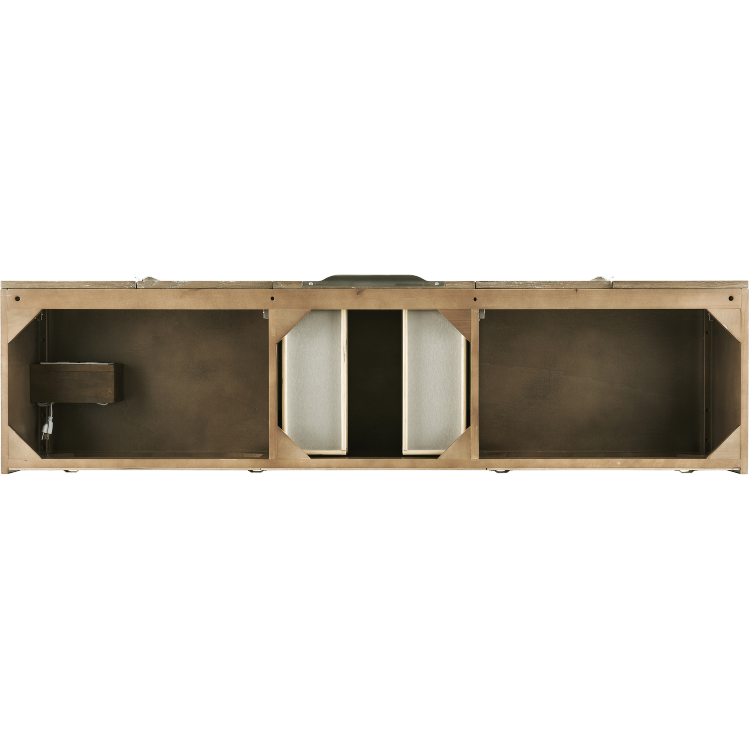 The Columbia 72" Latte Oak Double Vanity Cabinet offers maximum storage with four soft-closing doors and three soft-closing drawers. This cabinet includes premium features such as one solid bamboo drawer organizer and one 120 Volt UL Rated electrical component with two electrical and two USB outlets. Cabinet includes Brushed Nickel door and drawer pulls. This wall-mounted vanity includes heavy duty mounting brackets to create a modern look.Solid plywood with Red Oak Veneers120 Volt UL rated electrical component with two electrical and two USB (2.0) outletsFour doors, three drawersDrawer bottoms are lined with our signature brushed aluminum laminate.Solid bamboo in-drawer organizerStainless Steel Hardware in Brushed NickelDiscover elegance redefined with the Columbia Vanity Collection by James Martin Vanities. A testament to modern luxury, this collection brings a transformative touch to your bathroom space. With a choice of three cabinet finishes, each piece in the Columbia collection is a blend of minimalist aesthetics and functional brilliance, featuring sleek, clean lines and sculpted hardware in three metal finish options. Whether you prefer a striking, free-standing statement piece or a sleek, space-saving wall-mounted design, the Columbia collection caters to your unique style. Its innovative installation options, including an optional metal base, ensure a seamless fit into any bathroom layout. The beautiful yet durable composite stone integrated sinktop is impact-resistant with an antibacterial nano-coat surface."1 year warranty against manufacturer's defects. We will repair or replace any defective product, if the product is defective in material or workmanship at our discretion. No warranty is expressed or implied regarding damages resulting from consumer misuse.