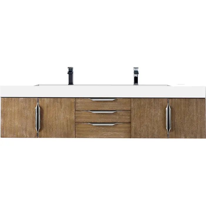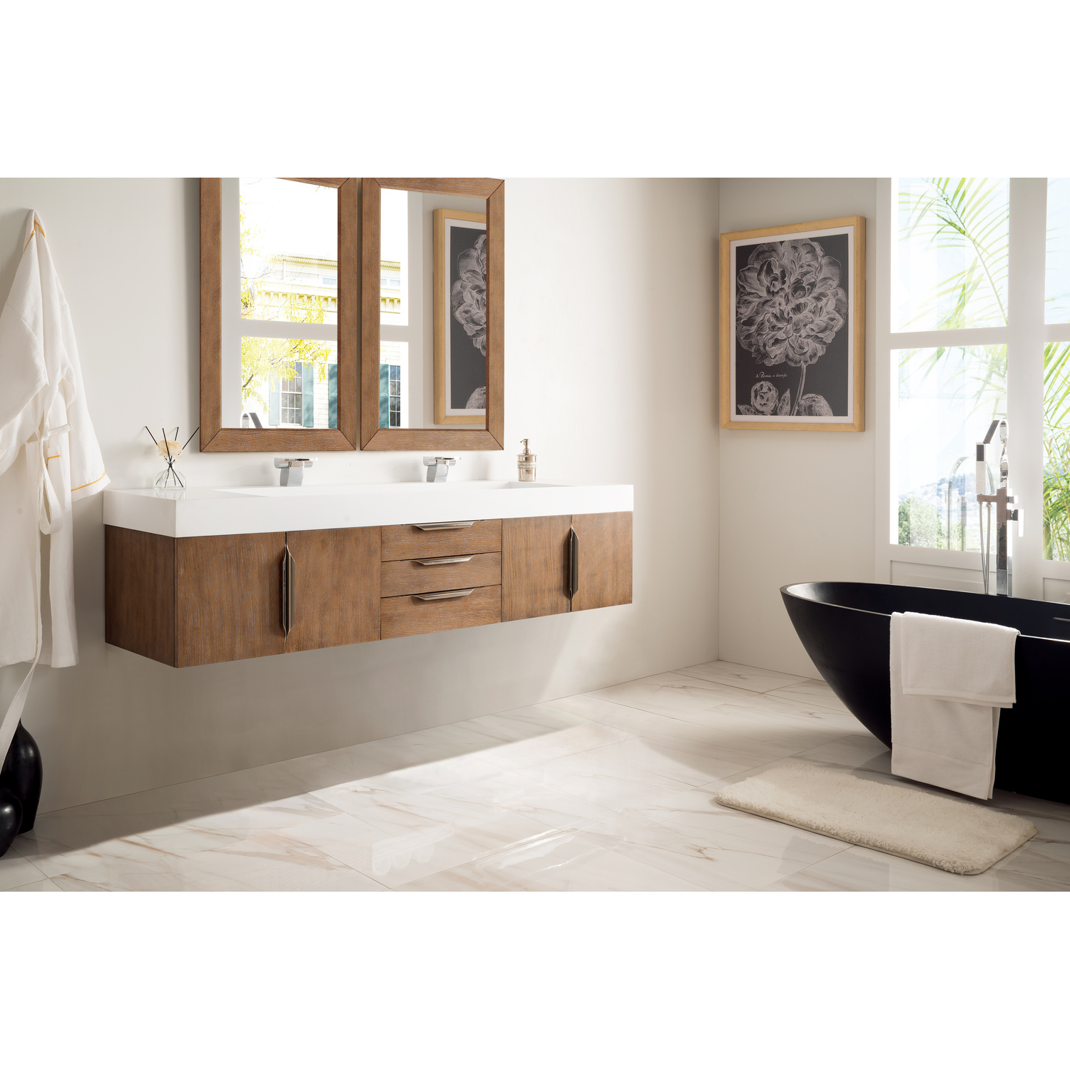 James Martin Columbia 72 inch Double Wall Mount Vanity, Latte Oak, Brushed Nickel w/ Glossy White Composite Stone Top, 840108965135, 983-V72D-W-LO-N-GW