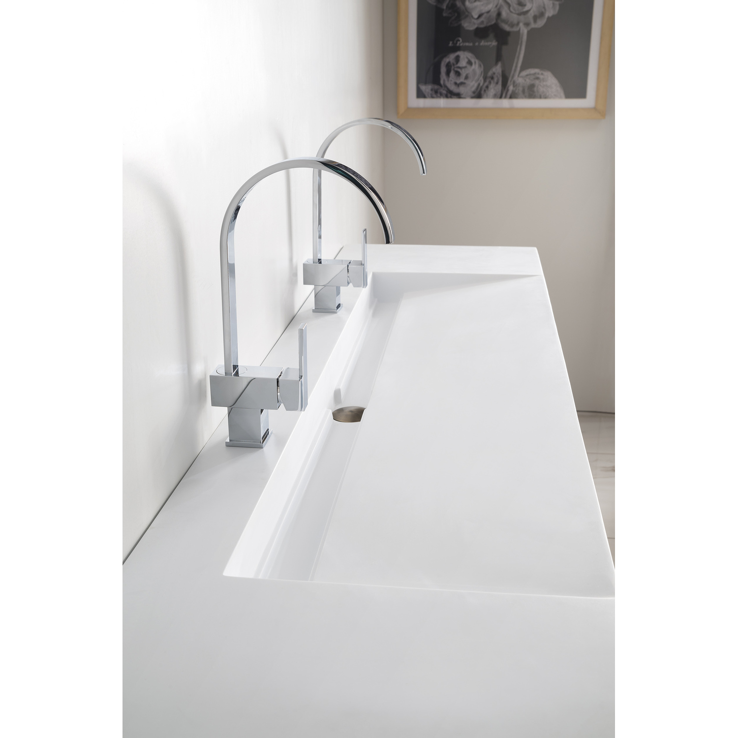 The Columbia 72" Latte Oak Double Vanity offers maximum storage with four soft-closing doors and three soft-closing drawers. This cabinet includes premium features such as one solid bamboo drawer organizer and one 120 Volt UL Rated electrical component with two electrical and two USB outlets. Cabinet includes Brushed Nickel door and drawer pulls. Glossy White Composite Stone countertop with integrated wide, angled trough-style sink. This wall-mounted vanity includes heavy duty mounting brackets to create a modern look.Composite stone integrated sink top in Glossy WhiteSolid plywood with Red Oak Veneers120 Volt UL rated electrical component with two electrical and two USB (2.0) outletsFour doors, three drawersDrawer bottoms are lined with our signature brushed aluminum laminate.Solid bamboo in-drawer organizerStainless Steel Hardware in Brushed NickelThis cabinet can be wall-mounted; mounting hardware includedDiscover elegance redefined with the Columbia Vanity Collection by James Martin Vanities. A testament to modern luxury, this collection brings a transformative touch to your bathroom space. With a choice of three cabinet finishes, each piece in the Columbia collection is a blend of minimalist aesthetics and functional brilliance, featuring sleek, clean lines and sculpted hardware in three metal finish options. Whether you prefer a striking, free-standing statement piece or a sleek, space-saving wall-mounted design, the Columbia collection caters to your unique style. Its innovative installation options, including an optional metal base, ensure a seamless fit into any bathroom layout. The beautiful yet durable composite stone integrated sinktop is impact-resistant with an antibacterial nano-coat surface."1 year warranty against manufacturer's defects. We will repair or replace any defective product, if the product is defective in material or workmanship at our discretion. No warranty is expressed or implied regarding damages resulting from consumer misuse.