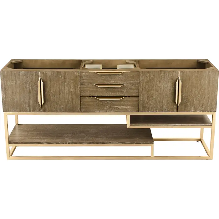James Martin Columbia 72 inch Single Vanity Cabinet, Latte Oak, Radiant Gold, 840108964534, 983-V72S-LTO-RG