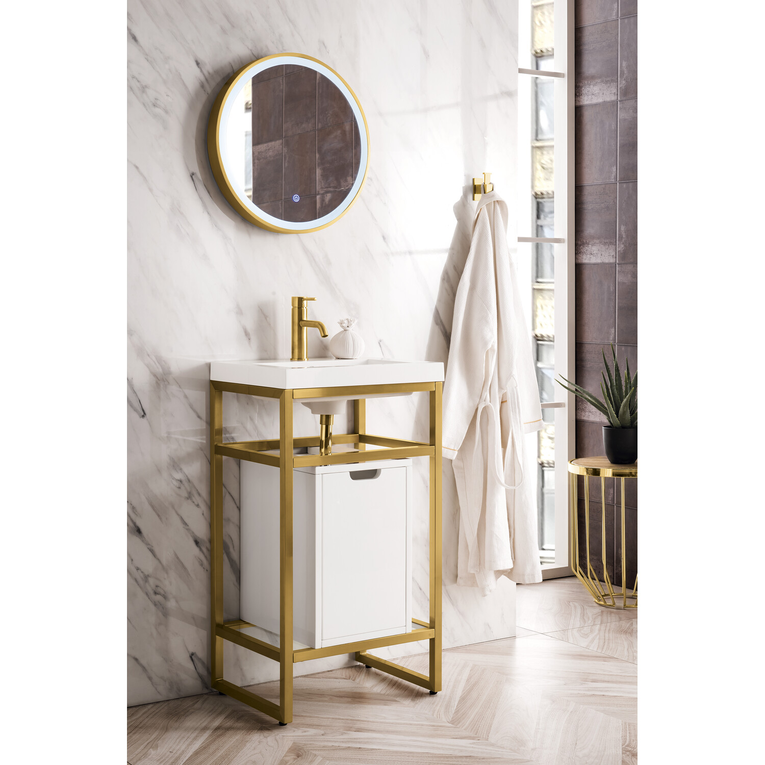 James Martin Boston 20 inch Single Console Bathroom Vanity, Radiant Gold w/ Glossy White Storage, White Glossy Composite Stone C105V20RGDSCGWWG