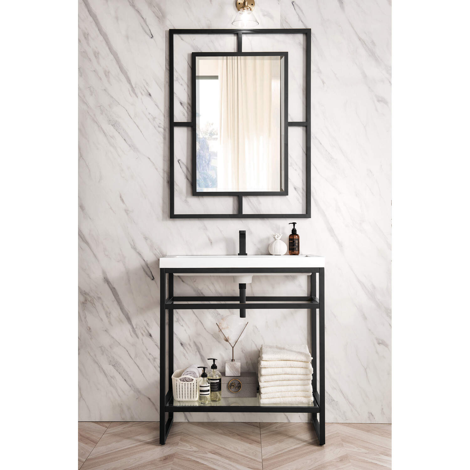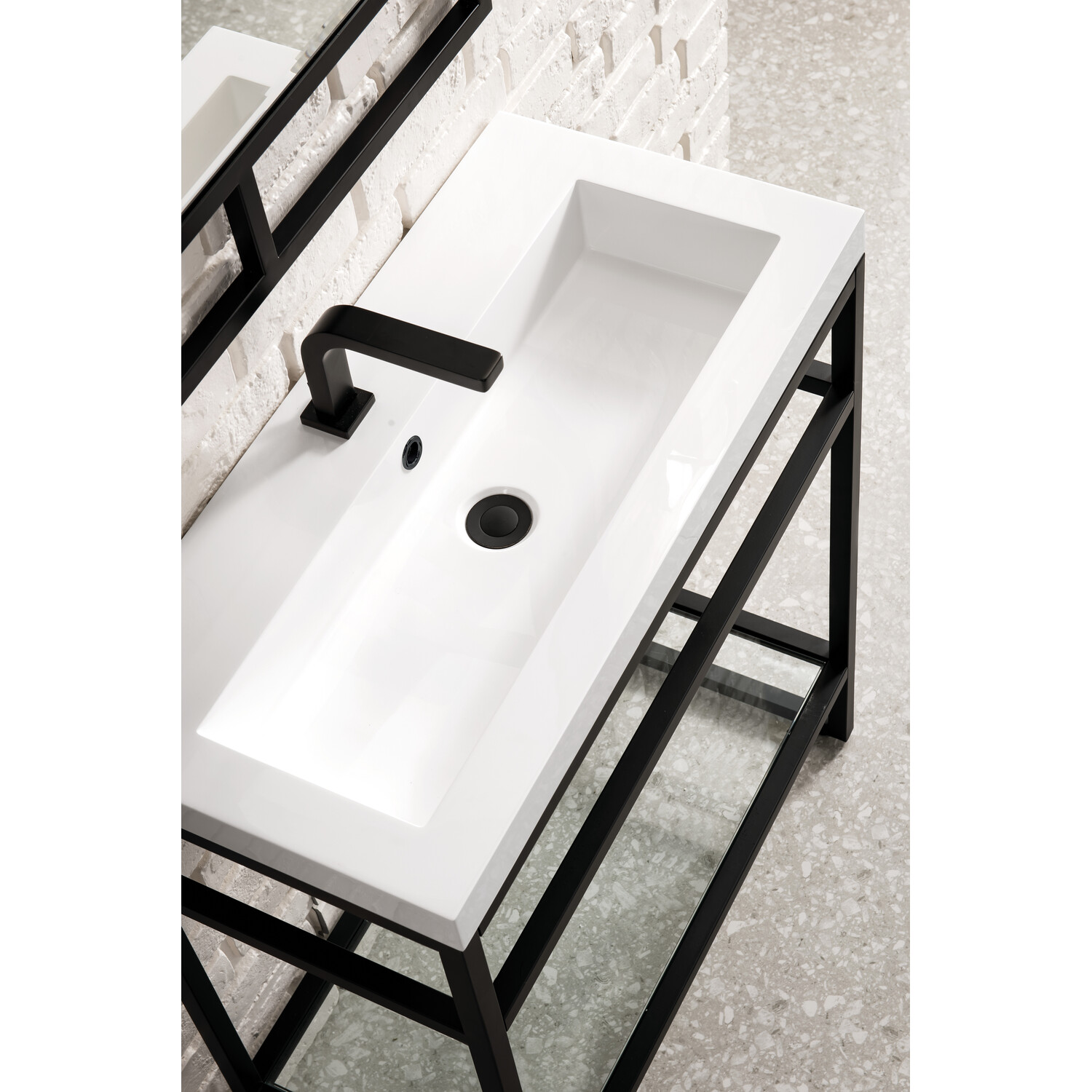 - Matte Black single console vanity