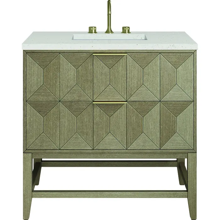 James Martin Emmeline 36 inch Single Vanity, Pebble Oak w/ 3 CM Lime Delight Top, 840108970030, D100-V36-PBO-3LDL