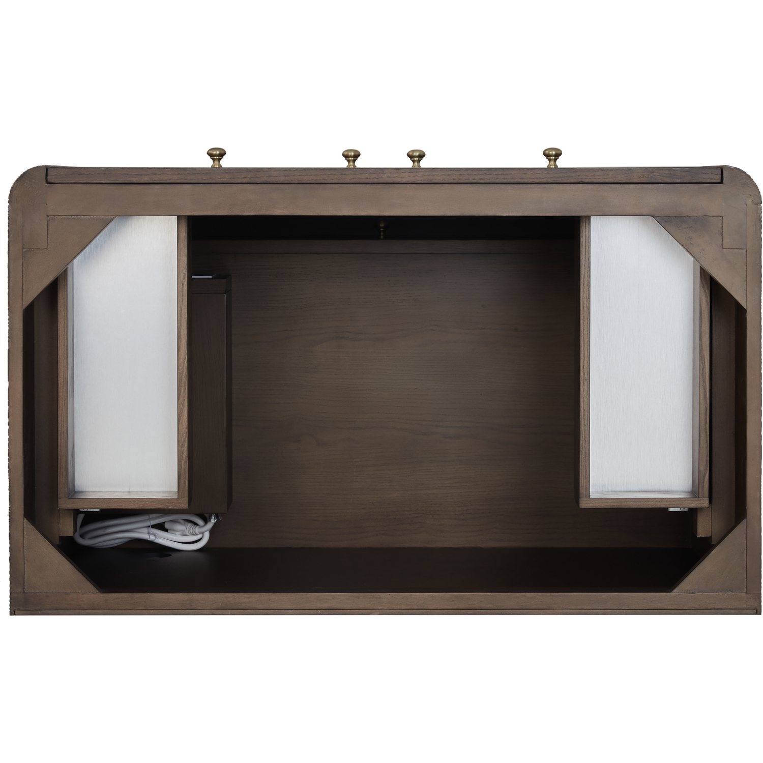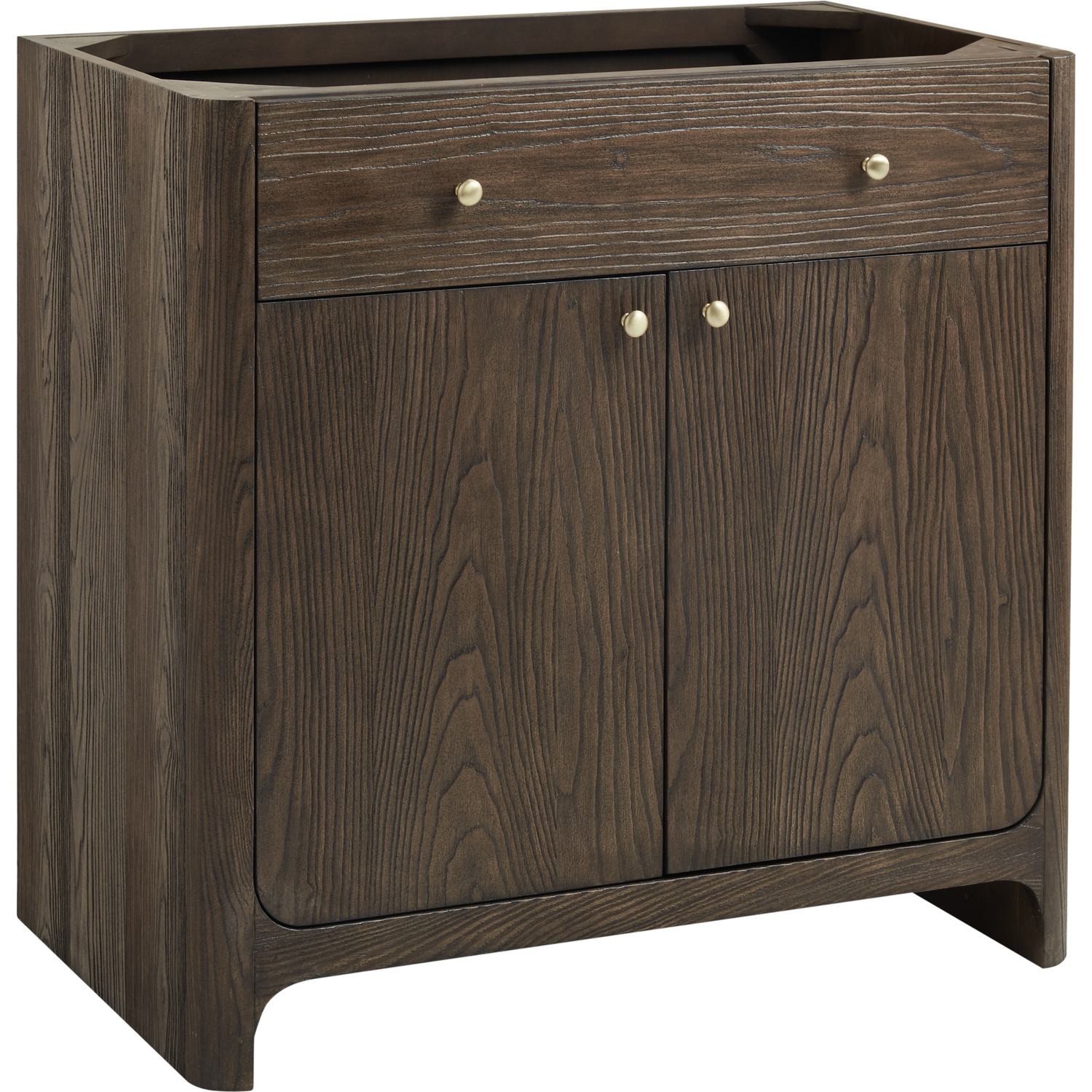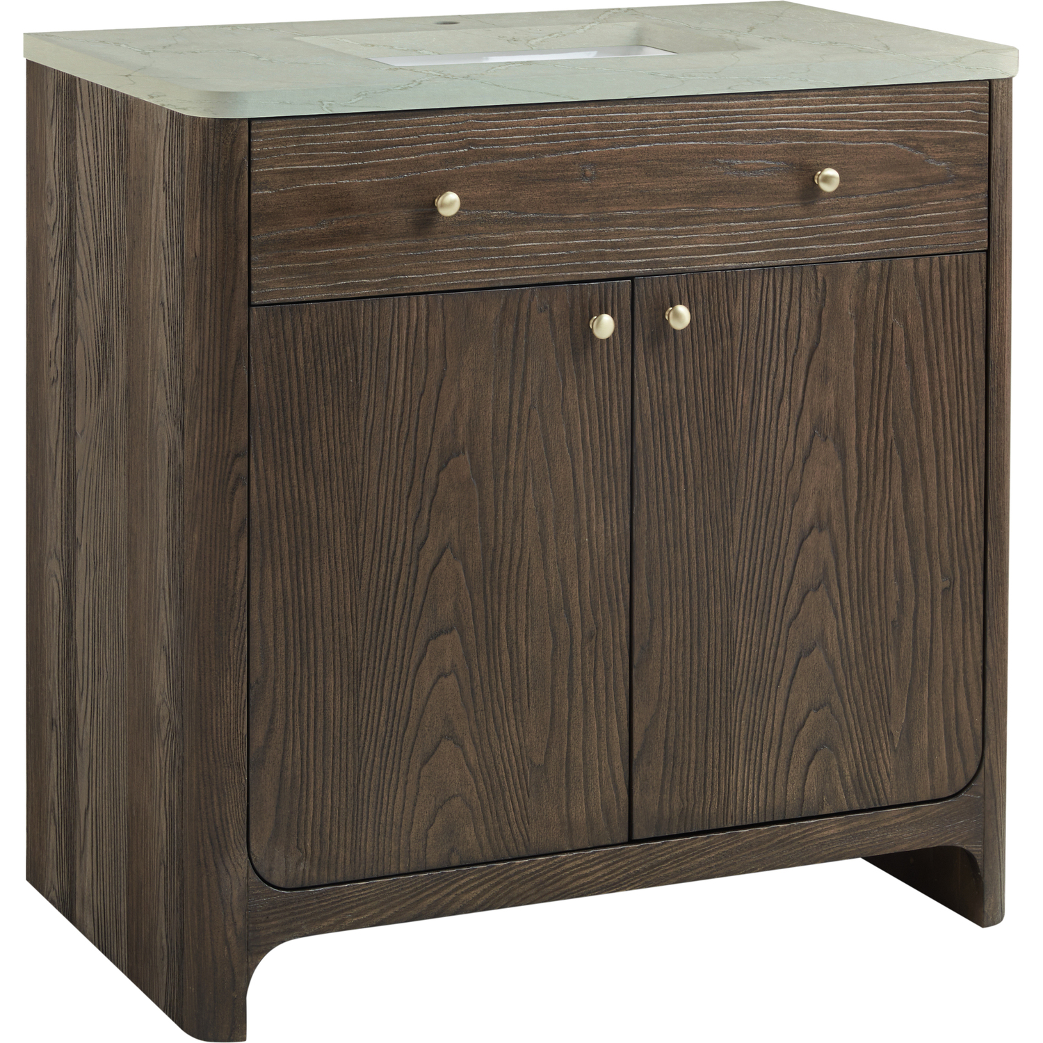 The Gracyn 36" Single Vanity is a tactile and visual delight, boasting soft curves and a rich Sable finish that brings character to your space. The sand-blasted finish on natural Ash gives textural and visual definition to the wood grain, truly bringing this piece to life. Featuring an integrated USB/120V power unit and smooth radius edges, the Gracyn is complemented by elegant Champagne Brass hardware. The two-door cabinet features ample storage with one exterior drawer, interior shelving, and one internal drawer. With the addition of a gorgeous Victorian Silver Silestone top and undermount sink, this vanity is a seamless integration of modern design and functionality.Two-door cabinet with one external drawer, one interior shelf, and one internal drawerDrawer boxes feature English Dovetail joinery with premium, soft-close undermount drawer slides; doors feature soft-close, adjustable door hingesCabinet features a multi-stage premium finish coat to offer UV and moisture resistanceSand-blasted Ash wood in Sable finish with Champagne Brass hardwareCountertop is pre-drilled for a single hole faucet; our 3cm eased edge countertops come with white porcelain rectangular sink(s) that ship separately and include mounting brackets for easy installationIntegrated 120V Outlet with USB PortsDrawers lined with our signature brushed aluminum laminate for easy cleaningRemovable drawer organizer in Ash wood includedFreestanding vanityMatching stone backsplash available as add-on purchaseFaucet sold separatelyFeaturing a modern silhouette and beaming with texture, the Gracyn Collection by James Martin Vanities brings a natural elegance to any space. The Gracyn features soft curves and a sand-blasted finish on natural Ash, which gives textural and visual definition to the grain, truly bringing this piece to life. Offered in three sizes and two beautiful finishes - each paired with complimentary hardware - this vanity offers generous storage with its internal and external drawers and removable drawer organizer. Let Gracyn transform your bathroom into an elegant and serene retreat.1 year warranty against manufacturer's defects. We will repair or replace any defective product, if the product is defective in material or workmanship at our discretion. No warranty is expressed or implied regarding damages resulting from consumer misuse.
