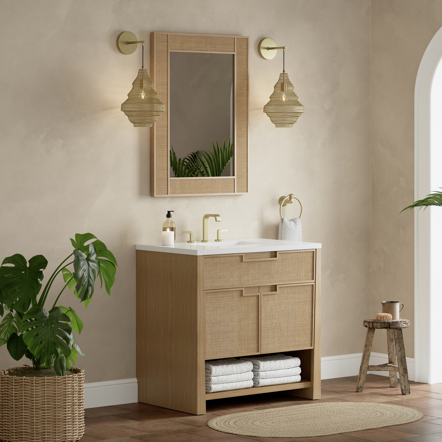 Exquisitely crafted, our Solene 28" Mirror in a natural-tone Seaside Oak finish is a beautiful blend of natural materials and architectural finesse. Featuring natural cane detailing and a White Oak frame, the Solene Mirror is meticulously designed to match our Solene vanities and comes equipped with a French Cleat picture hanger for ease of installation in a vertical orientation.28” W x 1” D x 38” H Rectangular MirrorWhite Oak frame with natural cane detailingSeaside Oak finishFrench Cleat picture hanger included for ease of installationThis mirror is designed to be hung verticallyAvailable in two finish optionsRooted in the elegance of Scandinavian simplicity and the craftsmanship of Arts and Crafts design, the Solene Collection showcases a masterful blend of architectural finesse. Crafted from White Oak and natural Cane, the Solene weaves together an elegant blend of natural materials. Bring your bathroom to life with the natural elements and contemporary aesthetic of Solene.1 year warranty against manufacturer's defects. We will repair or replace any defective product, if the product is defective in material or workmanship at our discretion. No warranty is expressed or implied regarding damages resulting from consumer misuse.