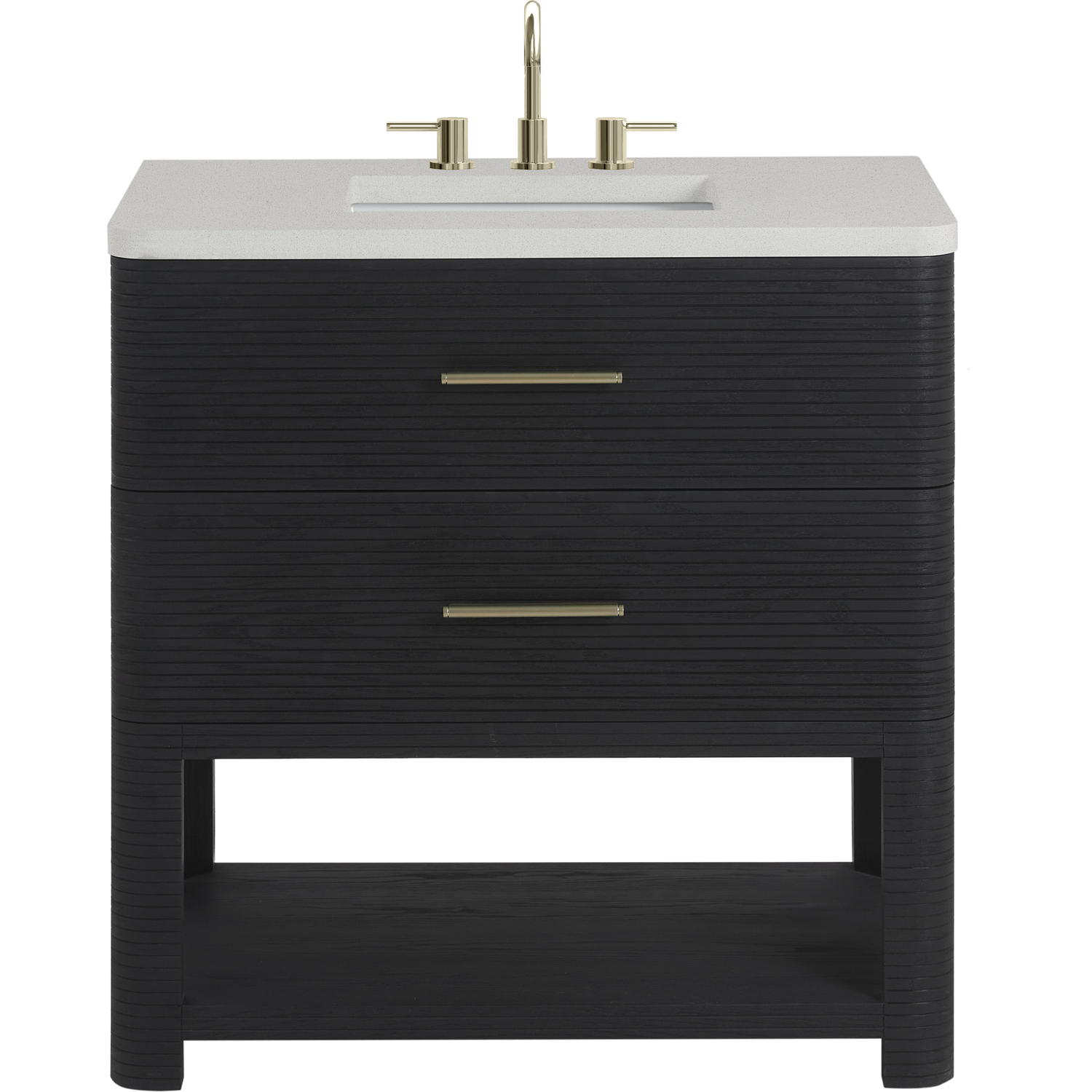 James Martin Lucian 36 inch Single Vanity, Carbon Oak w/ 3 CM White Zeus Silestone Widespread Top, 840467813283, D704-V36-CBO-WWZ