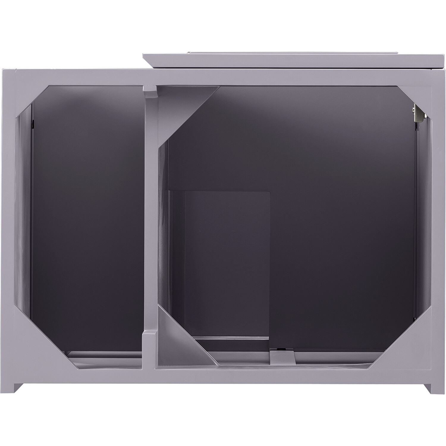 - One door Gray Smoke single vanity cabinet with interior and exterior shelf space
