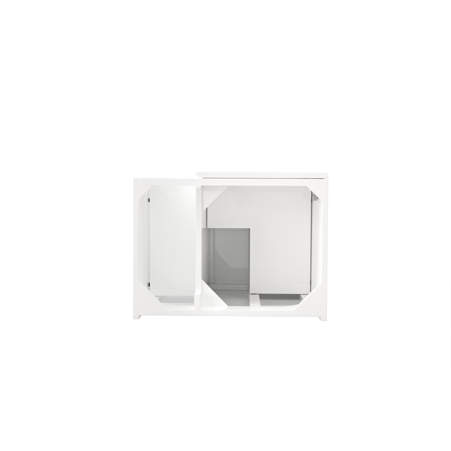 The Alicante 24” Glossy White Single Vanity Cabinet by James Martin Vanities is the perfect choice for any bathroom upgrade. Fine detailing on the frame accents its streamlined appearance. Each door front has framed detailing, adding depth and visual interest to the piece. Keep all your toiletries, makeup and more in this elegant vanity. This vanity features a wall mount design that will help make your bathroom appear larger.One door Glossy White single vanity cabinet with interior and exterior shelf spaceVanity cabinet only; hardware and Composite Stone integrated top and sink not includedSolid kiln-dried Grade A hardwoodCabinet is finished inside and out with a premium undercoat finish for superior moisture and UV resistanceSoft-close door hingesCabinet only, countertop not includedThis cabinet can be wall-hung; mounting hardware includedThe Alicante collection by James Martin Vanities offers big style in a subtle design. Its sleek metal base and raised panel doors create the perfect modern bathroom vanity. Constructed from fine quality solid hardwoods and comes with our top-rated resin countertop making this piece the epitome of luxury bathroom furniture. It’s timeless and versatile design is accentuated by its beautiful metal base and the vanity was built with external cubbies creating added storage for washroom essentials. This piece also gives you the option to float the look by removing the base. This vanity is sure to illuminate any bathroom with it’s opulent looks.1 year warranty against manufacturer's defects. We will repair or replace any defective product, if the product is defective in material or workmanship at our discretion. No warranty is expressed or implied regarding damages resulting from consumer misuse.