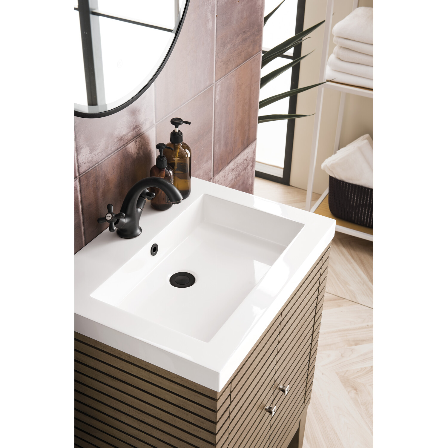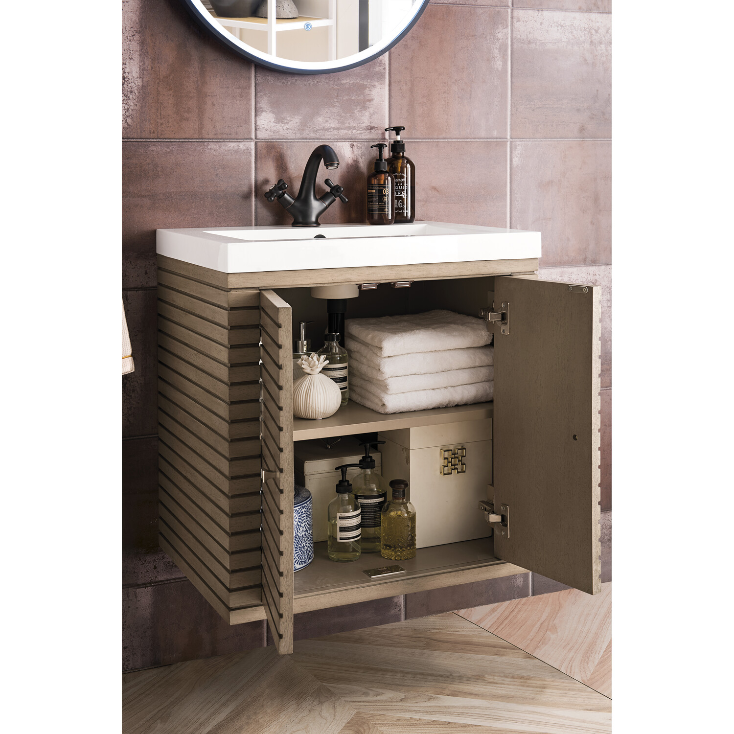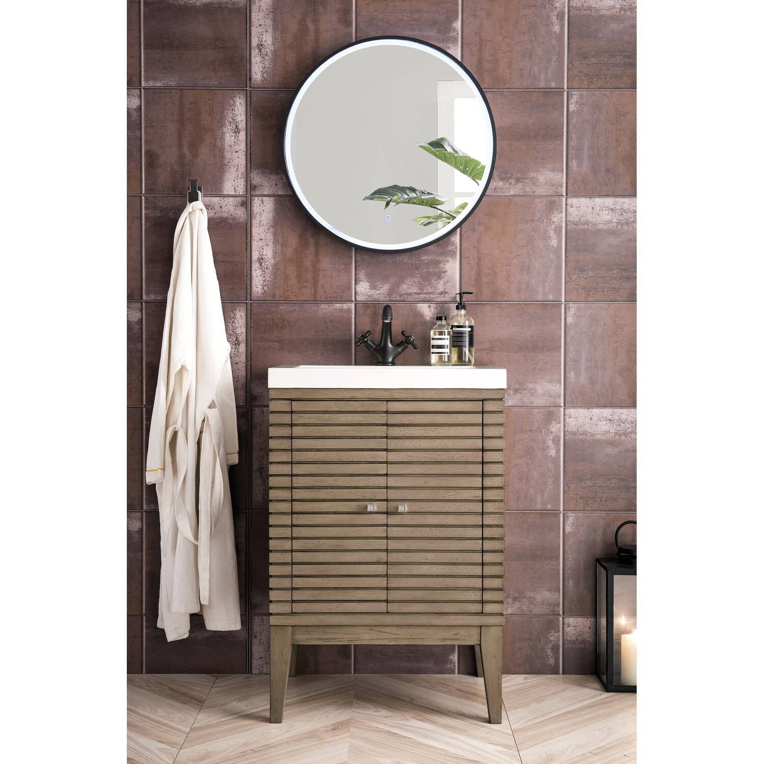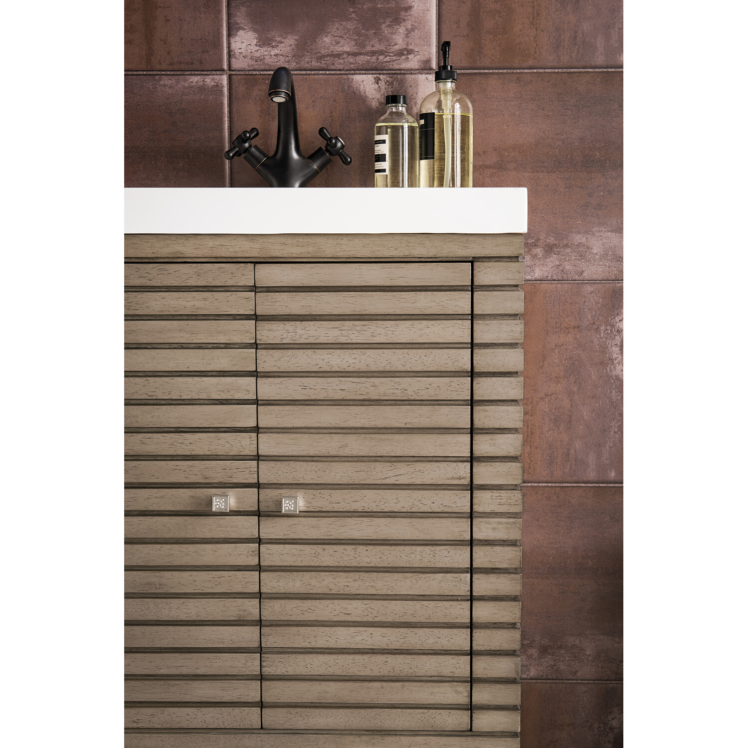James Martin Linden 24 inch Single Bathroom Vanity, Whitewashed Walnut w/ White Glossy Composite Stone Top E213V24WWWWG