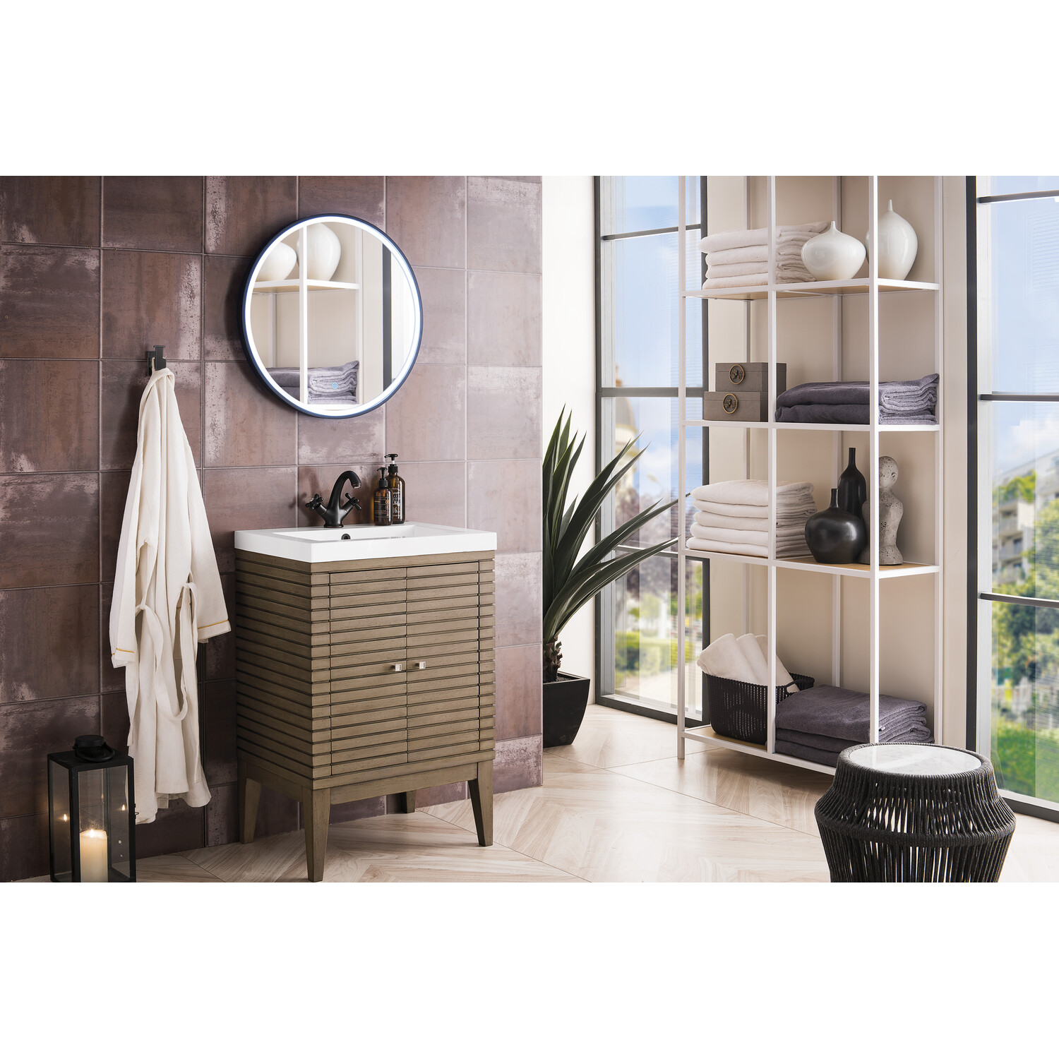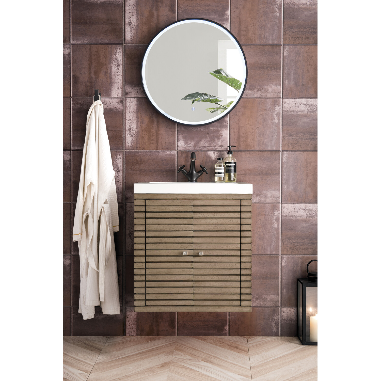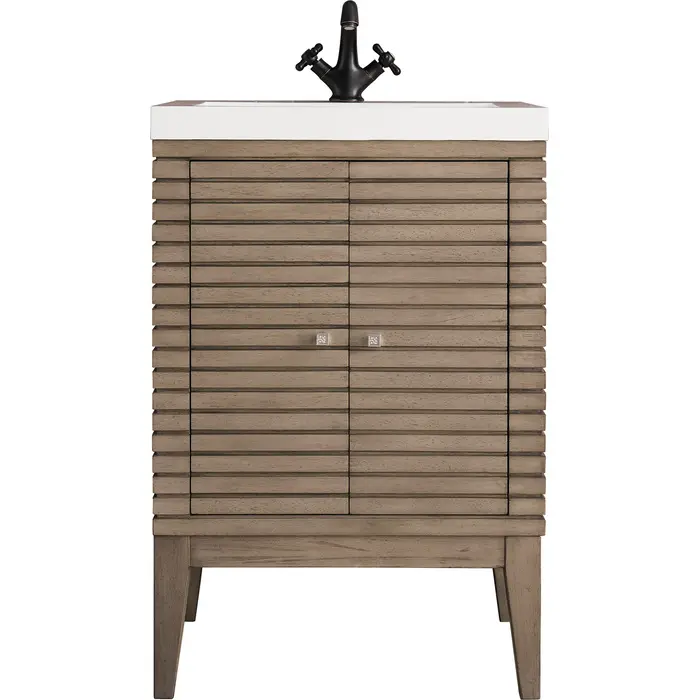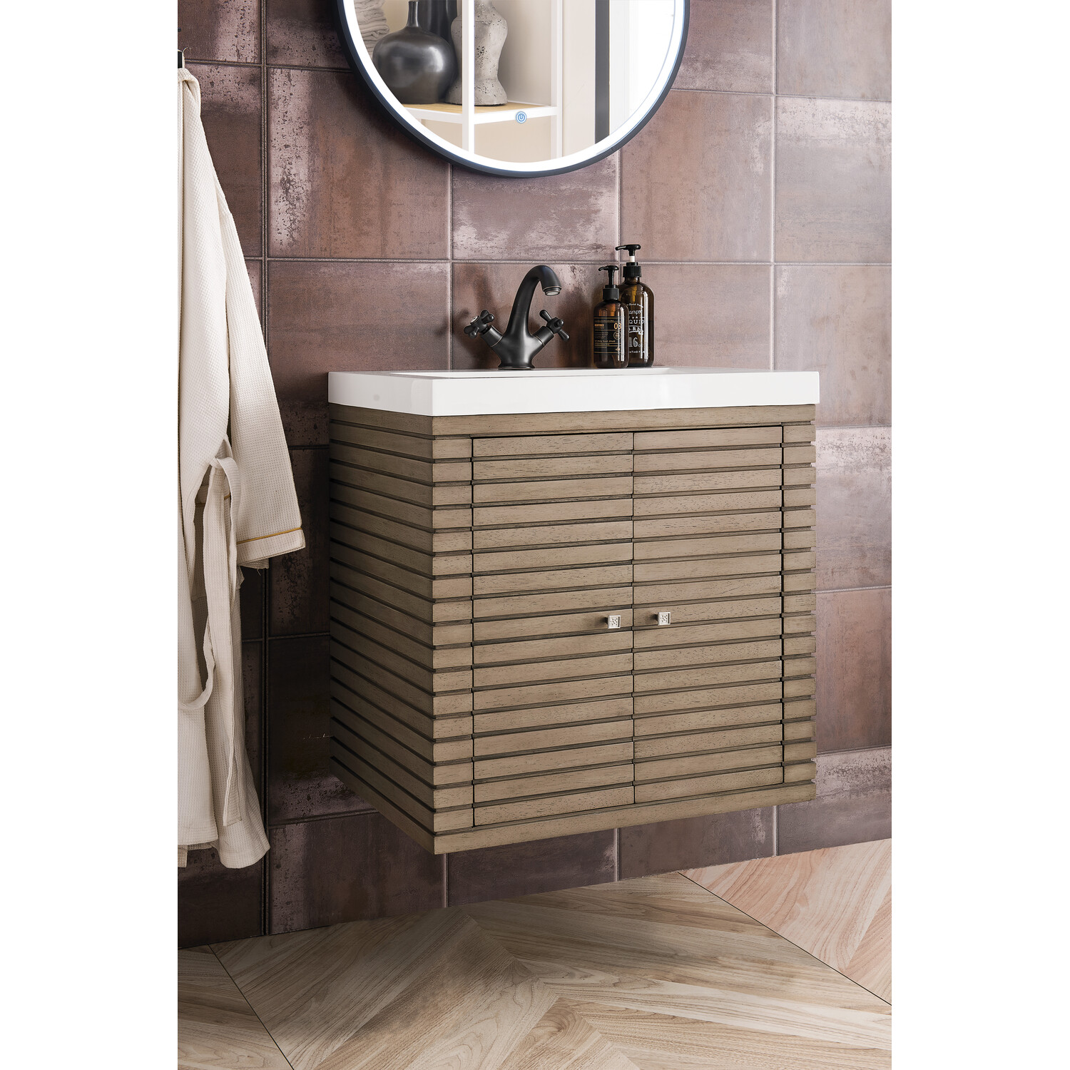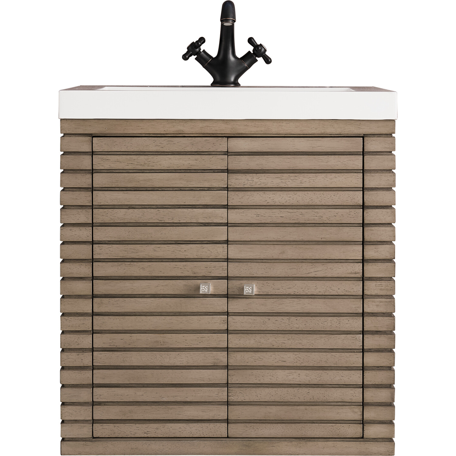 James Martin Linden 24 inch Single Bathroom Vanity, Whitewashed Walnut w/ White Glossy Composite Stone Top E213V24WWWWG