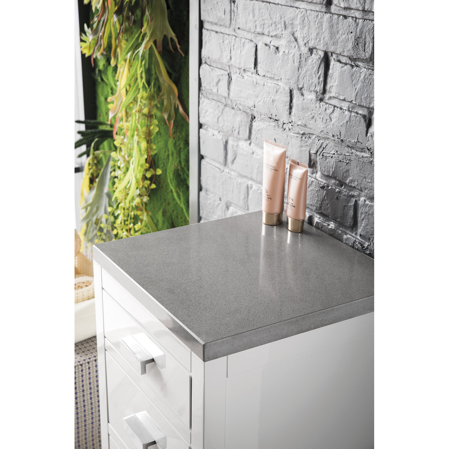 The Addison 15" Glossy White Base Cabinet by James Martin Vanities gives you you a fresh take on Shaker-inspired design with a look of luxury. Handcrafted and gender-neutral, it fits effortlessly into modern or transitional rooms. The look is completed with a 3 CM eased edge Eternal Serena Silestone top.Three drawer Glossy White base cabinetHardware Finish: Polished ChromeSolid kiln-dried Grade A hardwoodCabinet is finished inside and out with a premium undercoat finish for superior moisture and UV resistanceSoft-close, full extension undermount drawer glidesOne bamboo drawer organizer3 CM eased edge Eternal Serena Silestone top includedBring the simplicity of Shaker-inspired design to your bath with the fully modular Addison Collection by James Martin Vanities. Handcrafted of solid parawood with a hand-applied finish. Each piece is finished inside and out for stand-alone application. Addison’s slim, strong lines will offer a substantial look and feel to any room as well as work with a wide variety of different decors. Square legs raise the cabinet to generous toe-kick space. This elegant modular collection comes beautifully hand-finished in two incredible finishes: a rich, warm mid-century acacia color or a crisp, clean glossy white color and is accented with polished chrome hardware. For the ultimate in versatility, door panels reverse to textural cork in an elegant herringbone pattern giving you two looks in one. The Addison Collection harmoniously blends the best of both contemporary and transitional looks evoking a sense of solace and relaxation1 year warranty against manufacturer's defects. We will repair or replace any defective product, if the product is defective in material or workmanship at our discretion. No warranty is expressed or implied regarding damages resulting from consumer misuse.