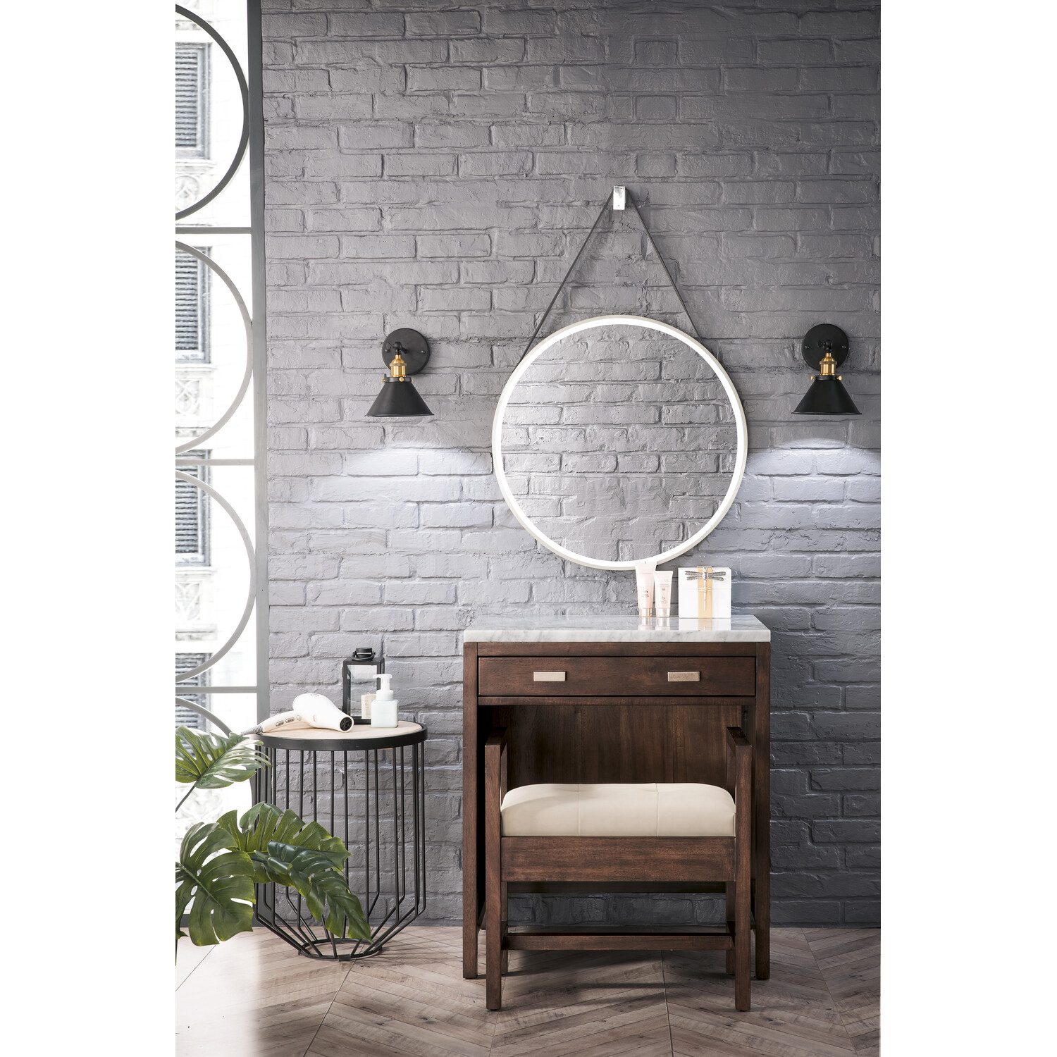 The Addison 30" Mid-Century Acacia Countertop Unit by James Martin Vanities gives you a fresh take on Shaker-inspired design with a look of luxury. Handcrafted and gender-neutral, it fits effortlessly into modern or transitional rooms. The look is completed with a 3 CM eased edge Carrara Marble top.One drawer Mid-Century Acacia countertop unit (makeup counter)Hardware Finish: Polished ChromeSolid kiln-dried Grade A hardwoodCabinet is finished inside and out with a premium undercoat finish for superior moisture and UV resistanceSoft-close undermount drawer glidesOne bamboo drawer organizer3 CM eased edge Carrara Marble top includedBring the simplicity of Shaker-inspired design to your bath with the fully modular Addison Collection by James Martin Vanities. Handcrafted of solid parawood with a hand-applied finish. Each piece is finished inside and out for stand-alone application. Addison’s slim, strong lines will offer a substantial look and feel to any room as well as work with a wide variety of different decors. Square legs raise the cabinet to generous toe-kick space. This elegant modular collection comes beautifully hand-finished in two incredible finishes: a rich, warm mid-century acacia color or a crisp, clean glossy white color and is accented with burnished nickel hardware. For the ultimate in versatility, door panels reverse to textural cork in an elegant herringbone pattern giving you two looks in one. The Addison Collection harmoniously blends the best of both contemporary and transitional looks evoking a sense of solace and relaxation1 year warranty against manufacturer's defects. We will repair or replace any defective product, if the product is defective in material or workmanship at our discretion. No warranty is expressed or implied regarding damages resulting from consumer misuse.