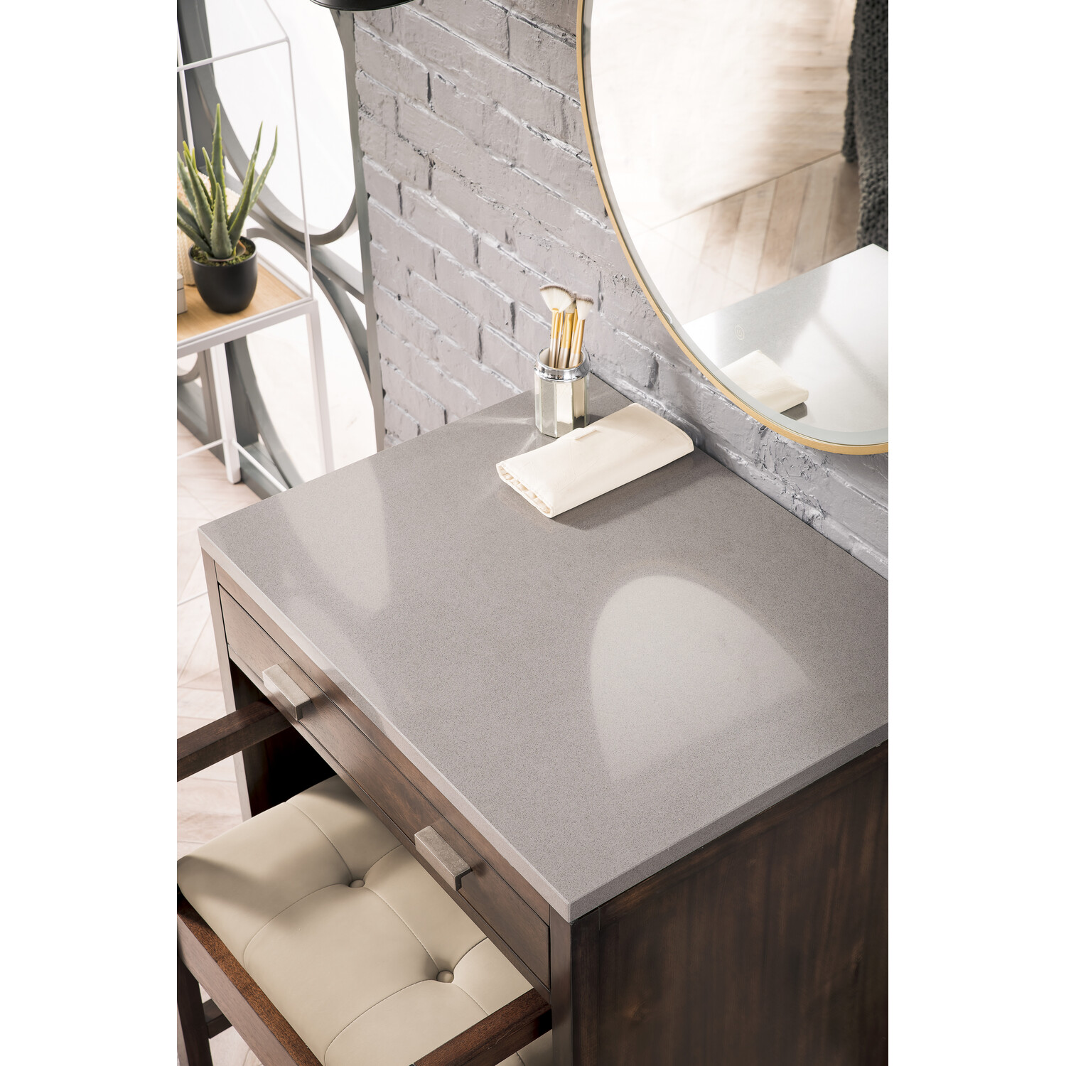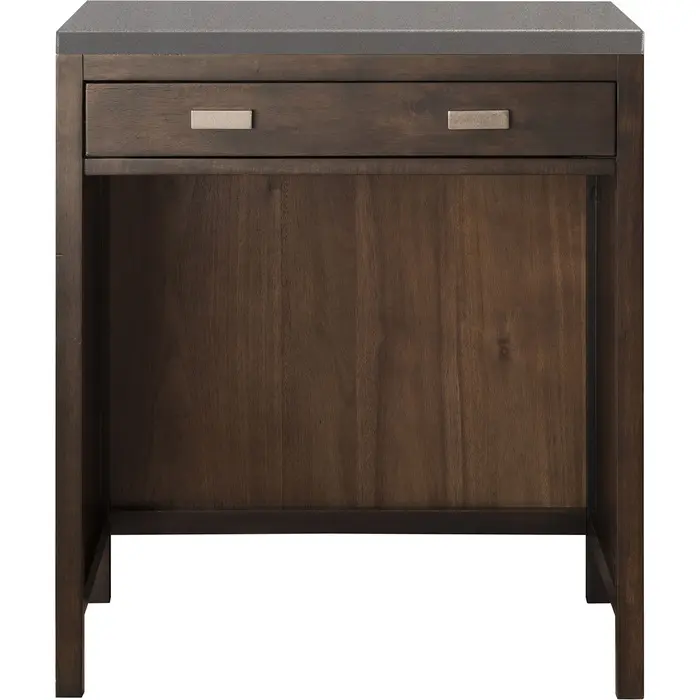 The Addison 30" Mid-Century Acacia Countertop Unit by James Martin Vanities gives you a fresh take on Shaker-inspired design with a look of luxury. Handcrafted and gender-neutral, it fits effortlessly into modern or transitional rooms. The look is completed with a 3 CM eased edge Grey Expo Silestone top.One drawer Mid-Century Acacia countertop unit (makeup counter)Hardware Finish: Polished ChromeSolid kiln-dried Grade A hardwoodCabinet is finished inside and out with a premium undercoat finish for superior moisture and UV resistanceSoft-close undermount drawer glidesOne bamboo drawer organizer3 CM eased edge Grey Expo Silestone top includedBring the simplicity of Shaker-inspired design to your bath with the fully modular Addison Collection by James Martin Vanities. Handcrafted of solid parawood with a hand-applied finish. Each piece is finished inside and out for stand-alone application. Addison’s slim, strong lines will offer a substantial look and feel to any room as well as work with a wide variety of different decors. Square legs raise the cabinet to generous toe-kick space. This elegant modular collection comes beautifully hand-finished in two incredible finishes: a rich, warm mid-century acacia color or a crisp, clean glossy white color and is accented with burnished nickel hardware. For the ultimate in versatility, door panels reverse to textural cork in an elegant herringbone pattern giving you two looks in one. The Addison Collection harmoniously blends the best of both contemporary and transitional looks evoking a sense of solace and relaxation1 year warranty against manufacturer's defects. We will repair or replace any defective product, if the product is defective in material or workmanship at our discretion. No warranty is expressed or implied regarding damages resulting from consumer misuse.