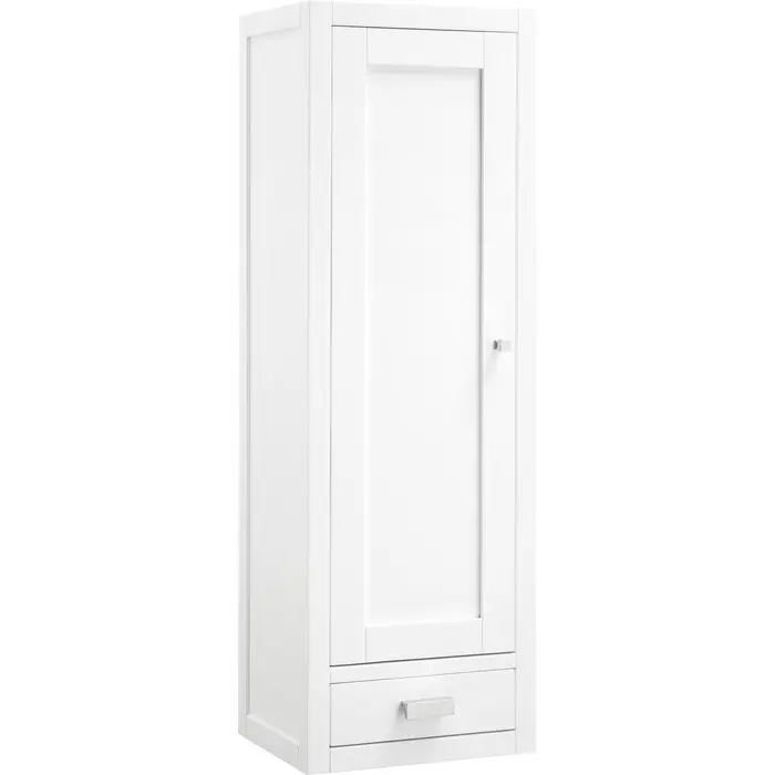 The Addison 12" Glossy White Petite Tower Hutch – Left by James Martin Vanities gives you a fresh take on Shaker-inspired design with a look of luxury. Handcrafted and gender-neutral, it fits effortlessly into modern or transitional rooms. This versatile tower hutch includes reversible door panels and additional storage. The Shaker touch comes from the sides and door. Each of the doors feature soft-close door hinges, these hinges have dual adjustments (up and down, forward and backward) to allow for alignment adjustments after the cabinet has been installed. The body of the cabinet is made of solid hardwood and sturdy panels of MDF. Interior shelves are both adjustable and removable. Each shelf is made from thick multi-layered plywood faced with stain-grade yellow poplar veneers. The cabinet interior and exterior is sealed with a moisture and UV resistant finsh.Glossy White petite tower hutch cabinet with one door and one drawer, leftHardware Finish: Polished ChromeSolid kiln-dried Grade A hardwoodCabinet is finished inside and out with a premium undercoat finish for superior moisture and UV resistanceSoft-close undermount drawer glides and soft-close door hingesDrawer bottom is lined with our signature brushed aluminum laminateHutch cabinet can be wall-mounted; mounting hardware includedBring the simplicity of Shaker-inspired design to your bath with the fully modular Addison Collection by James Martin Vanities. Handcrafted of solid parawood with a hand-applied finish. Each piece is finished inside and out for stand-alone application. Addison’s slim, strong lines will offer a substantial look and feel to any room as well as work with a wide variety of different decors. Square legs raise the cabinet to generous toe-kick space. This elegant modular collection comes beautifully hand-finished in two incredible finishes: a rich, warm mid-century acacia color or a crisp, clean glossy white color and is accented with polished chrome hardware. For the ultimate in versatility, door panels reverse to textural cork in an elegant herringbone pattern giving you two looks in one. The Addison Collection harmoniously blends the best of both contemporary and transitional looks evoking a sense of solace and relaxation1 year warranty against manufacturer's defects. We will repair or replace any defective product, if the product is defective in material or workmanship at our discretion. No warranty is expressed or implied regarding damages resulting from consumer misuse.