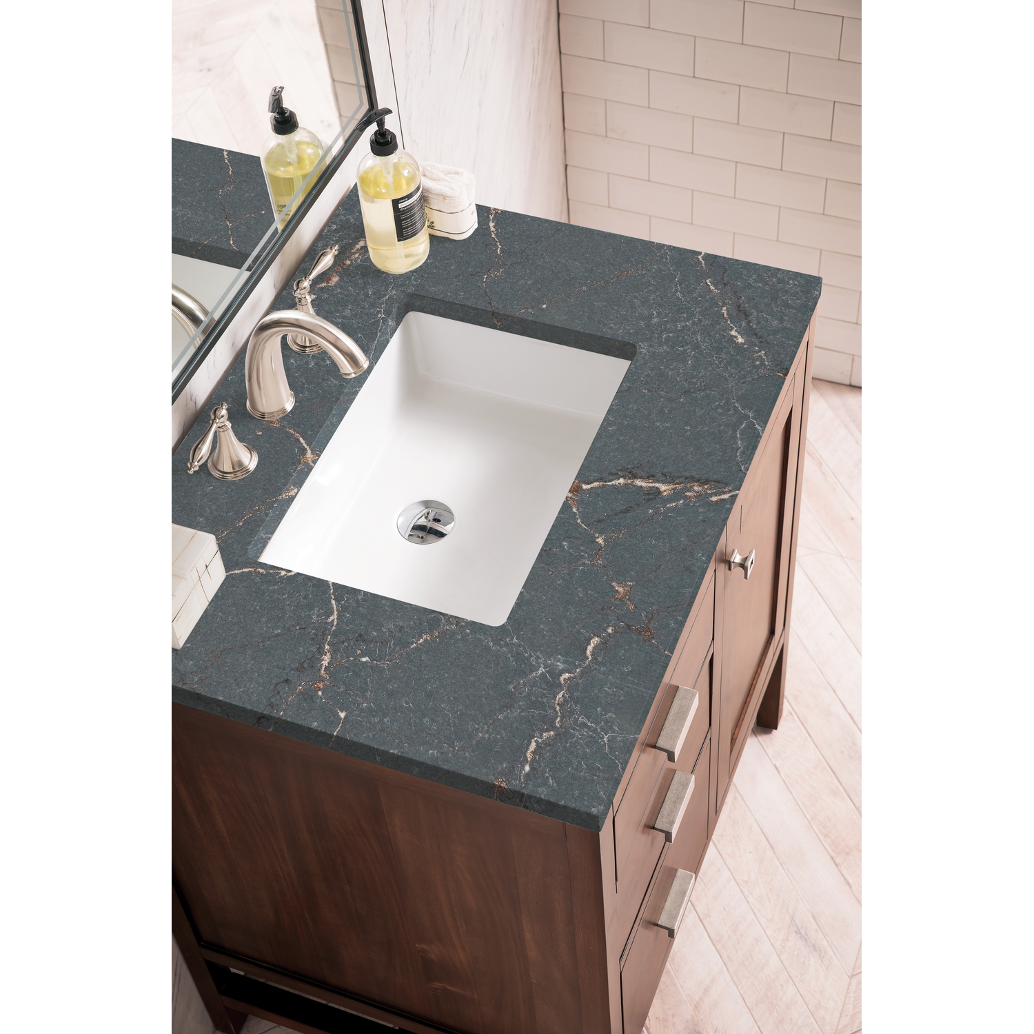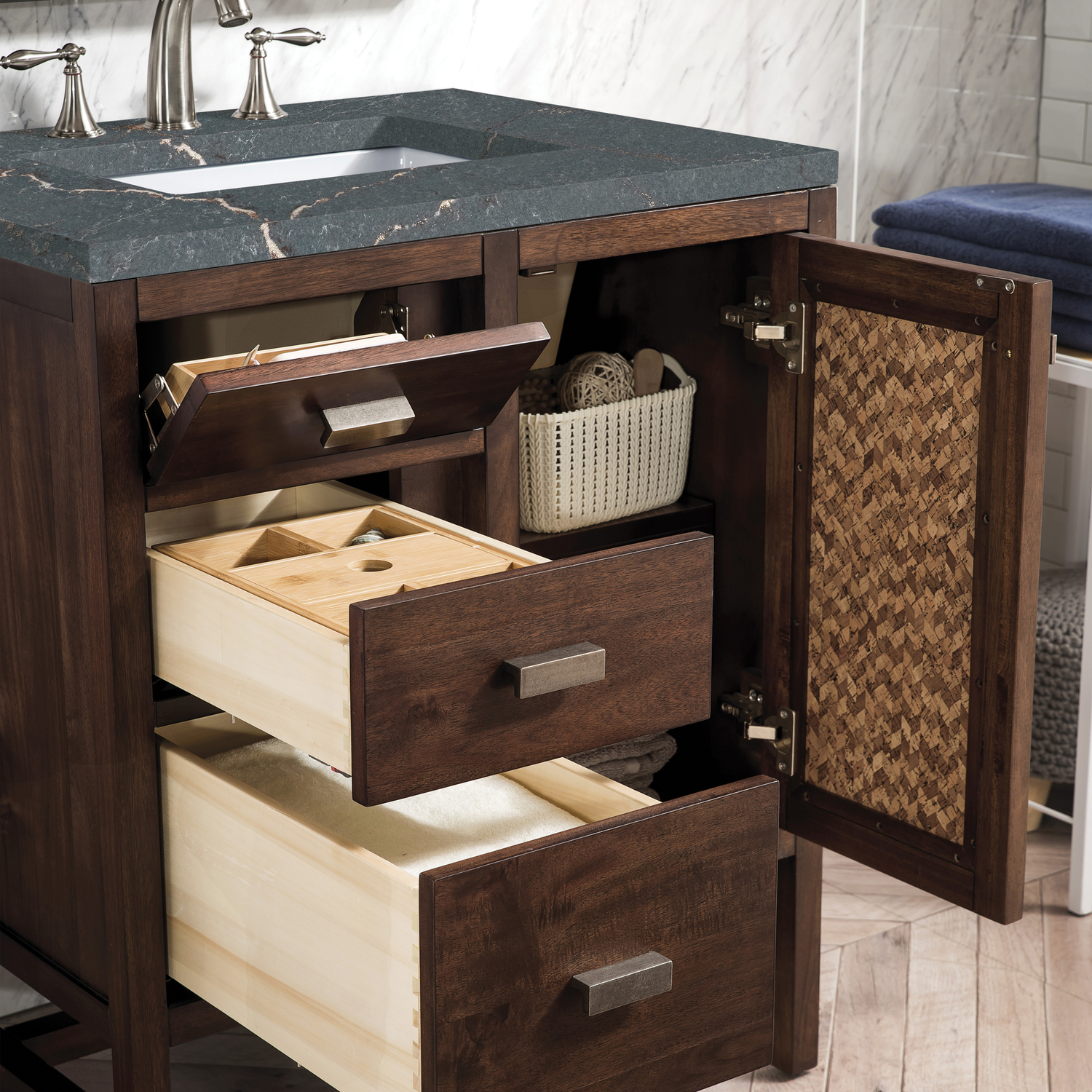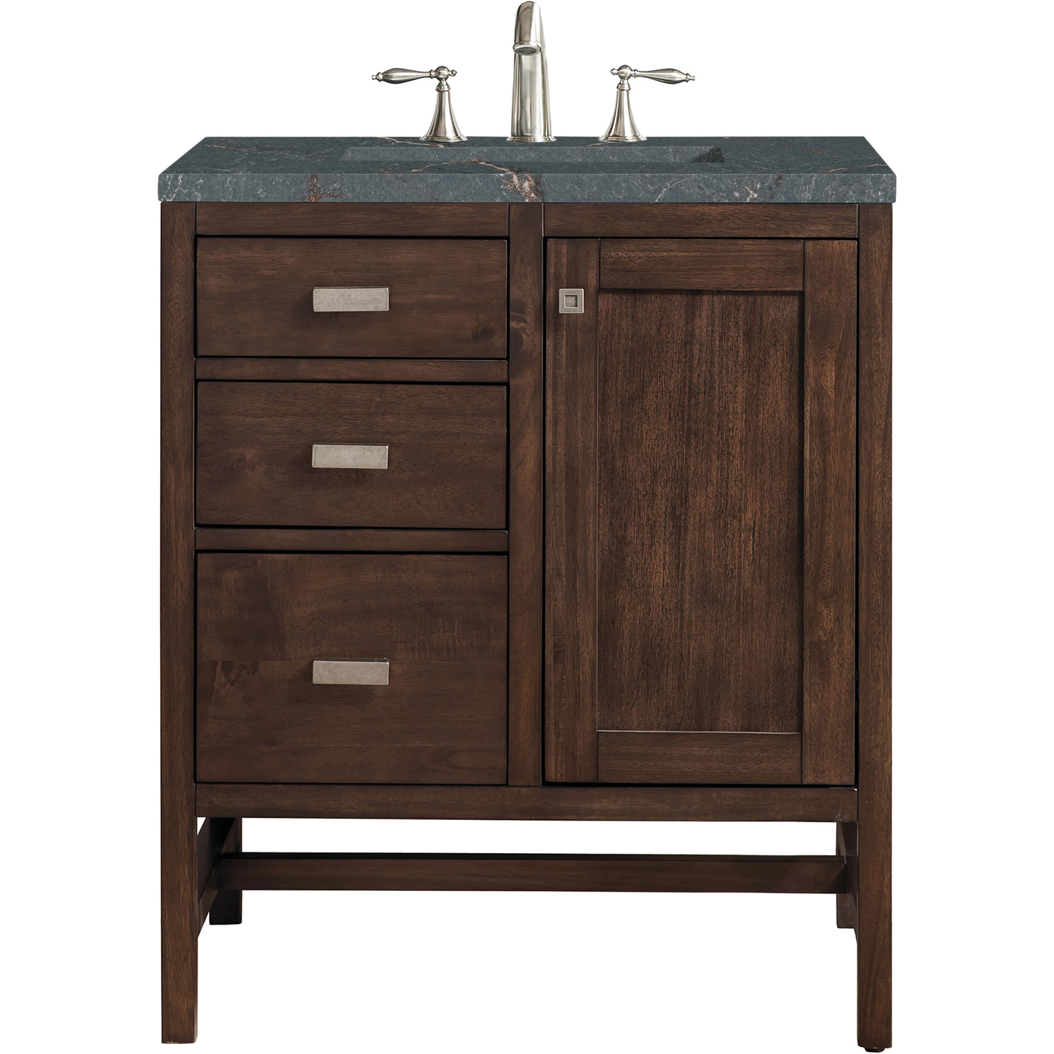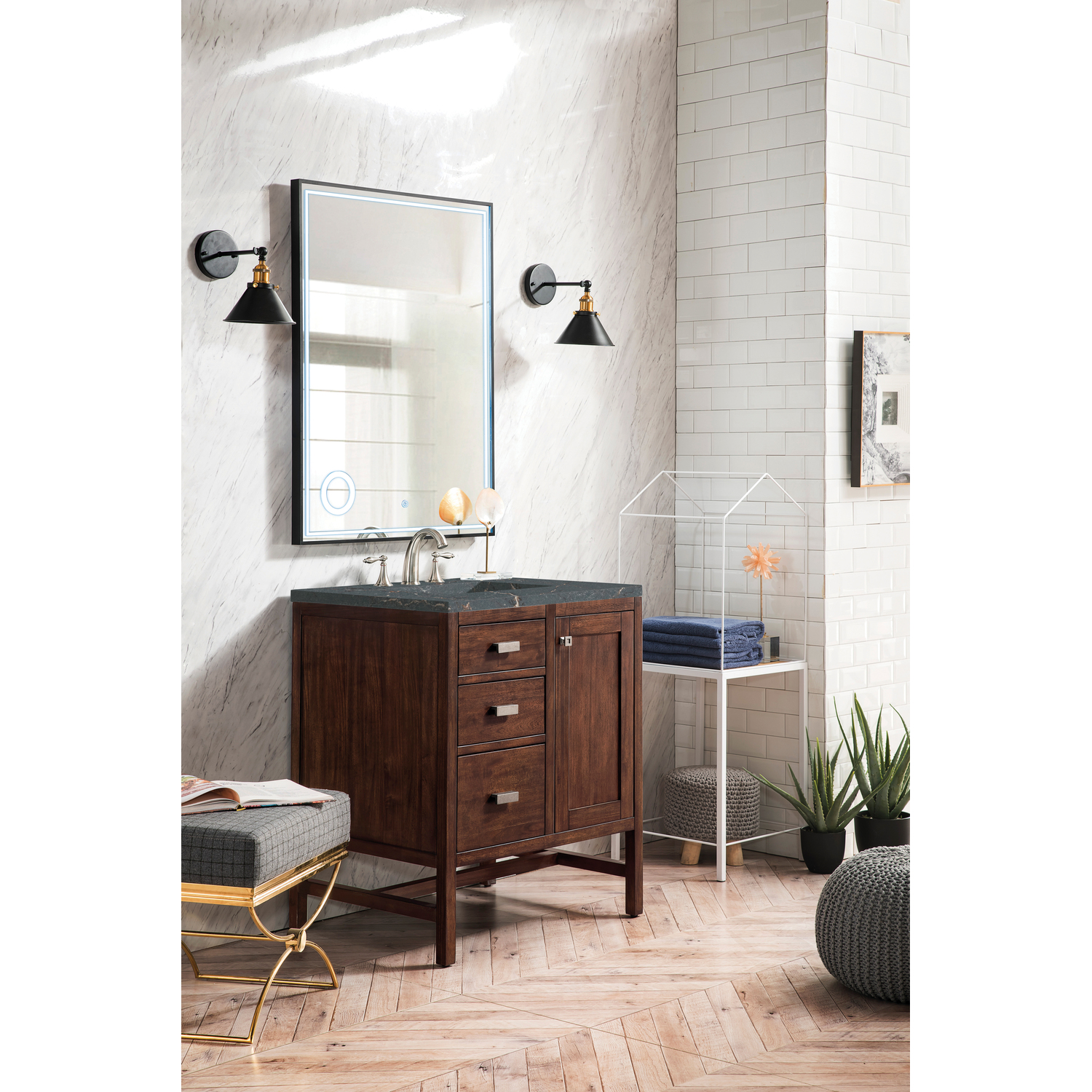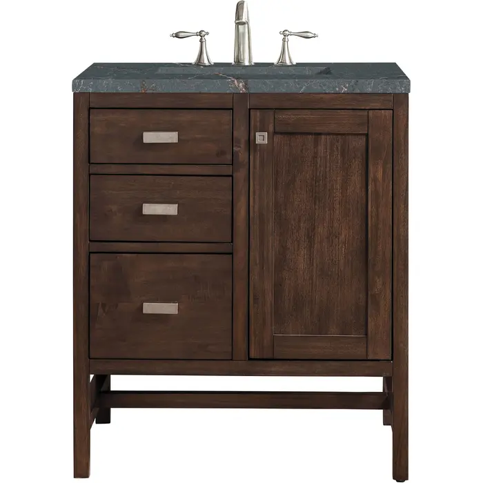 James Martin Addison 30 inch Single Vanity, Mid-Century Acacia w/ 3 CM Parisien Bleu Quartz Top, 840108968525, E444-V30-MCA-3PBL
