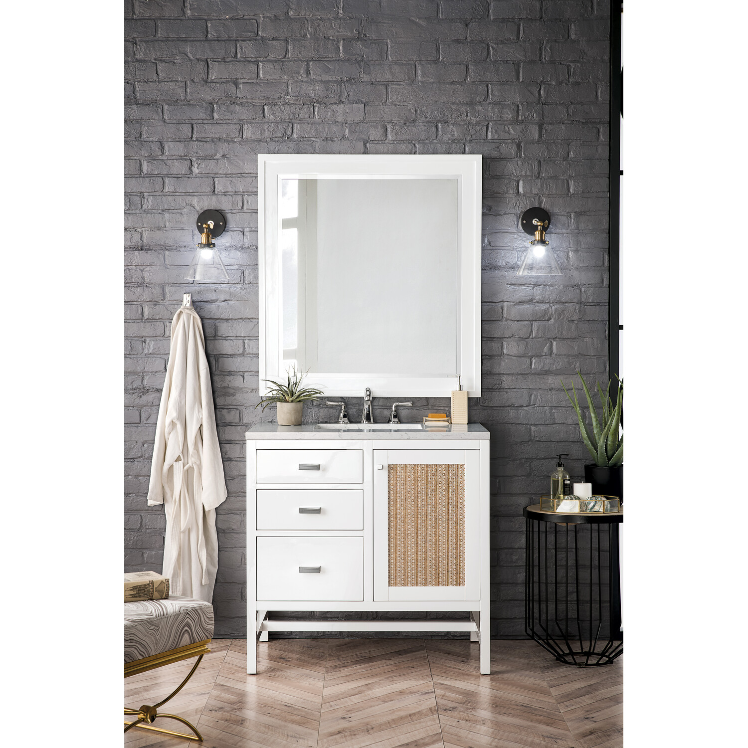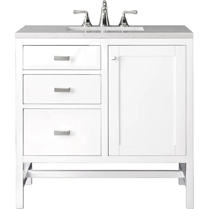 James Martin Addison 36 inch Single Bathroom Vanity, Glossy White w/ 3 CM Eternal Jasmine Pearl Quartz Top E444-V36-GW-3EJP