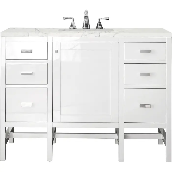 James Martin Addison 48 inch Single Bathroom Vanity, Glossy White w/ 3 CM Eternal Jasmine Pearl Quartz Top E444-V48-GW-3EJP