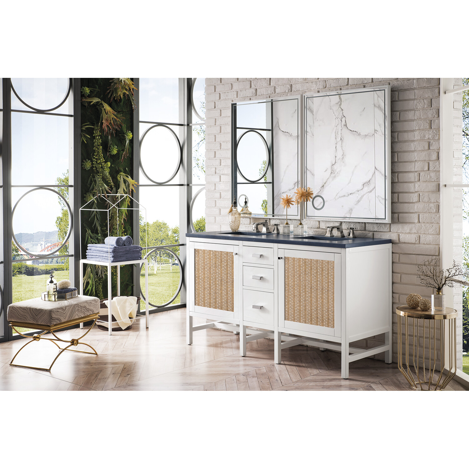 - Bring the simplicity of Shaker-inspired design to your bath with the fully modular Addison Collection by James Martin Vanities. Handcrafted of solid parawood with a hand-applied finish. Each piece is finished inside and out for stand-alone application. Addison’s slim, strong lines will offer a substantial look and feel to any room as well as work with a wide variety of different decors. Square legs raise the cabinet to generous toe-kick space. This elegant modular collection comes beautifully hand-finished in two incredible finishes: a rich, warm mid-century acacia color or a crisp, clean glossy white color and is accented with polished chrome hardware. For the ultimate in versatility, door panels reverse to textural cork in an elegant herringbone pattern giving you two looks in one. The Addison Collection harmoniously blends the best of both contemporary and transitional looks evoking a sense of solace and relaxation