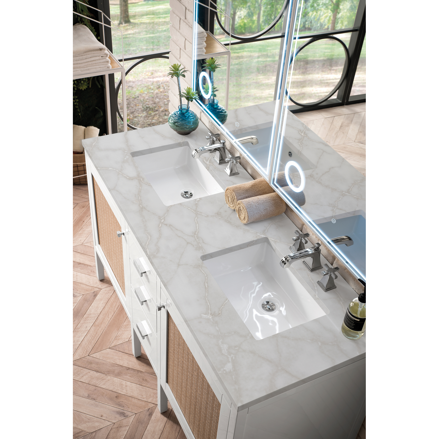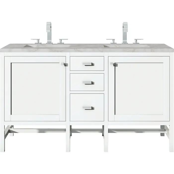 James Martin Addison 60 inch Double Vanity, Glossy White w/ 3 CM Victorian Silver Quartz Top, 840108967016, E444-V60D-GW-3VSL