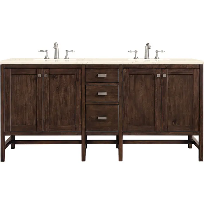 James Martin Addison 72 inch Double Bathroom Vanity, Mid-Century Acacia w/ 3 CM Eternal Marfil Quartz Top E444-V72-MCA-3EMR