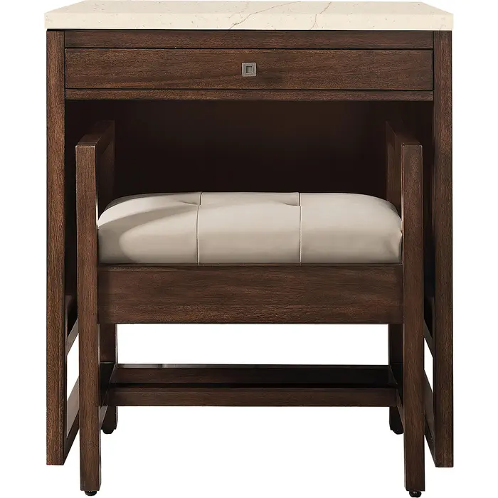 James Martin Athens 30 inch Countertop Unit (makeup counter), Mid Century Acacia w/ 3 CM Eternal Marfil Top, 840108916175, E645-DU30-MCA-3EMR