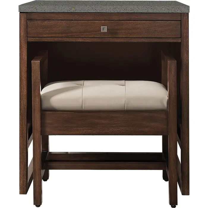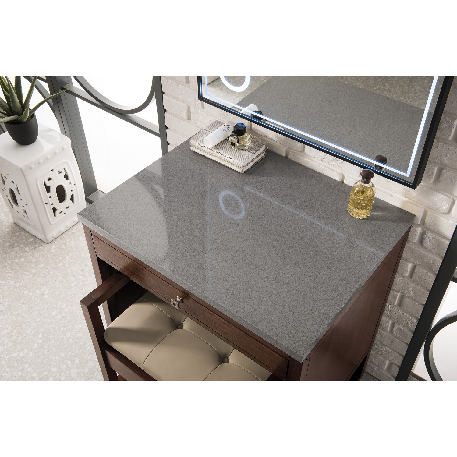 James Martin Athens 30 inch Countertop Unit (makeup counter), Mid Century Acacia w/ 3 CM Grey Expo Quartz Top, 840108916144, E645-DU30-MCA-3GEX