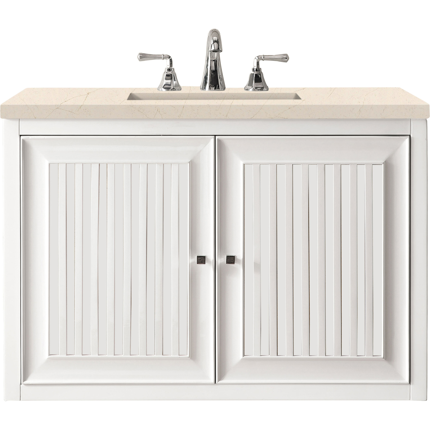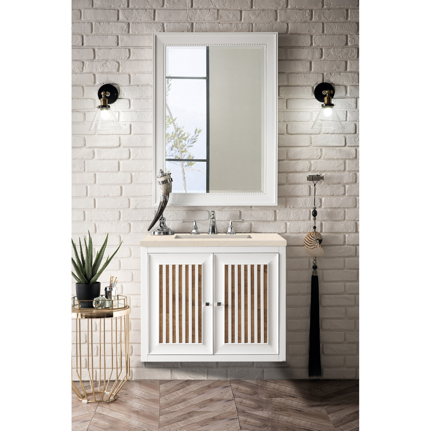 James Martin Athens 30 inch Single Bathroom Vanity, Glossy White w/ 3 CM Eternal Marfil Top E645-V30-GW-3EMR