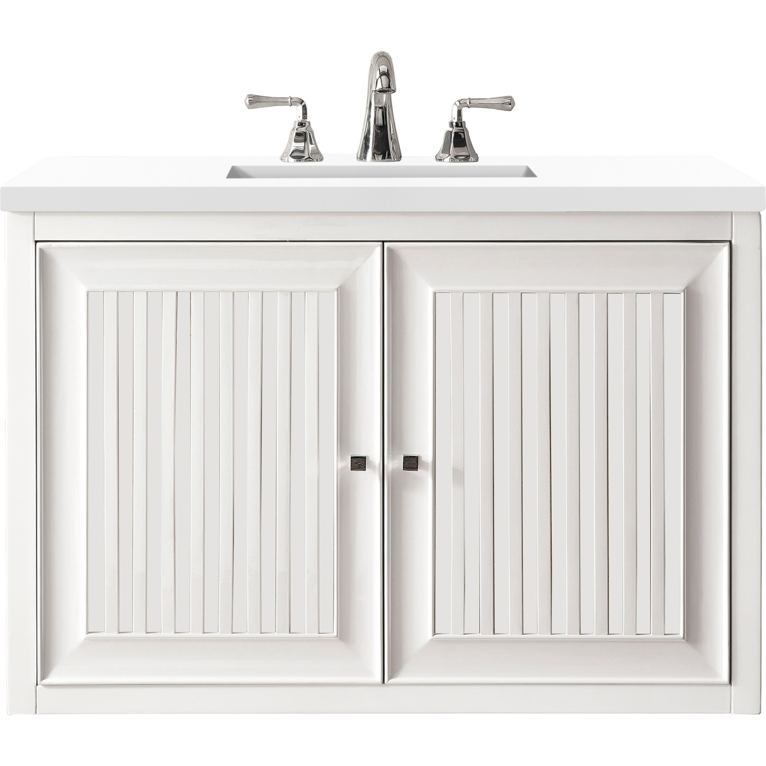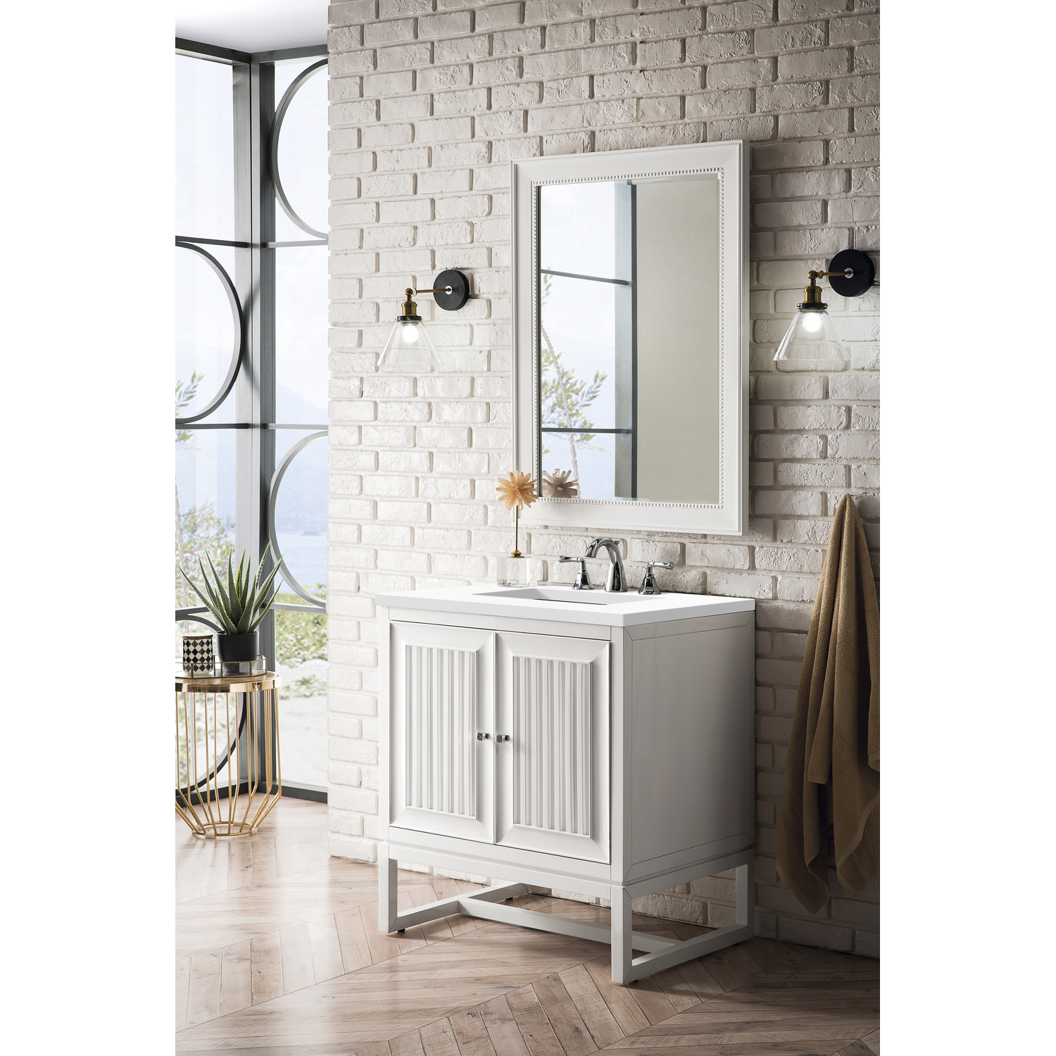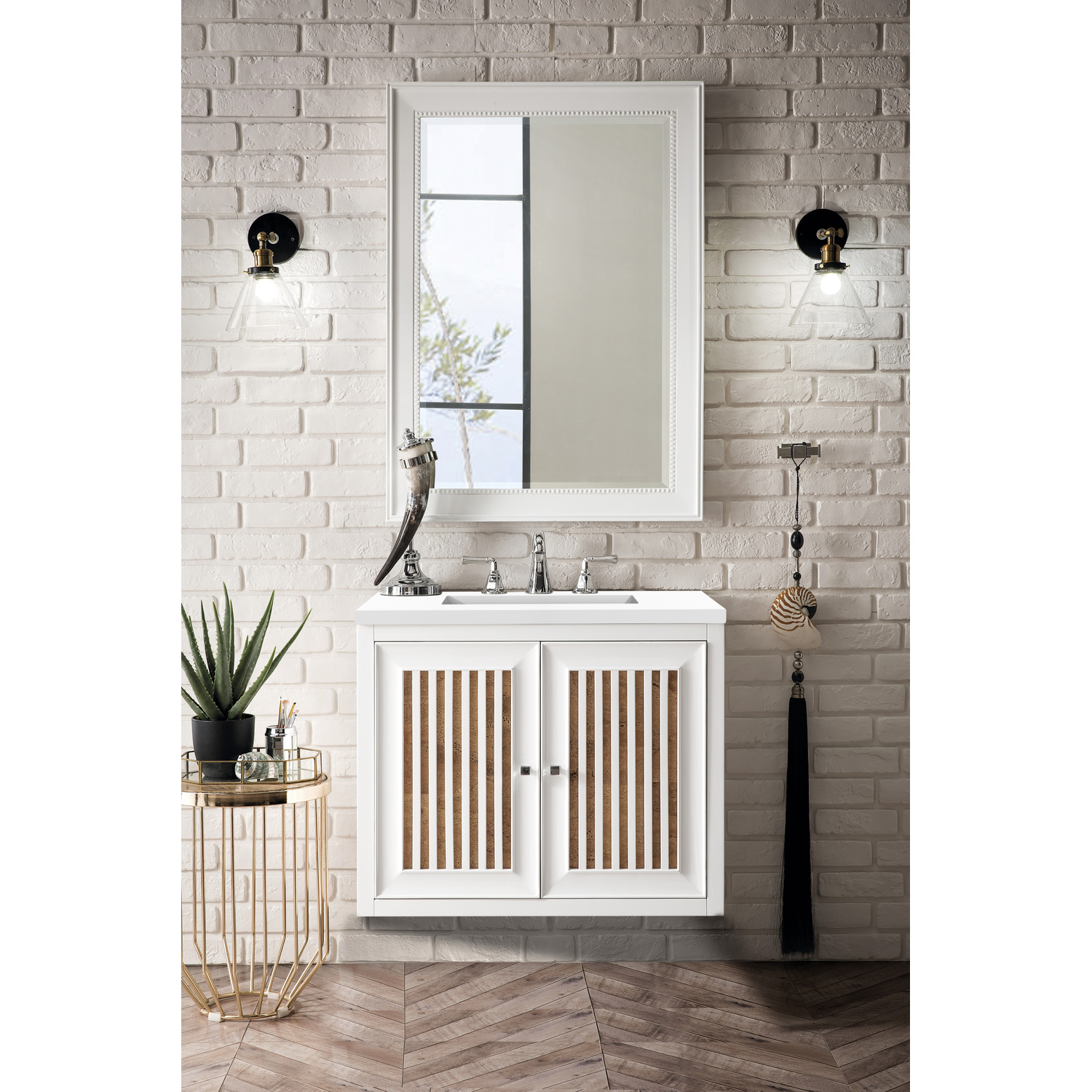 James Martin Athens 30 inch Single Bathroom Vanity, Glossy White w/ 3 CM White Zeus Quartz Top E645-V30-GW-3WZ