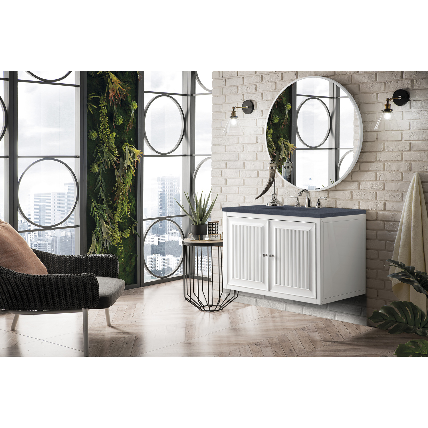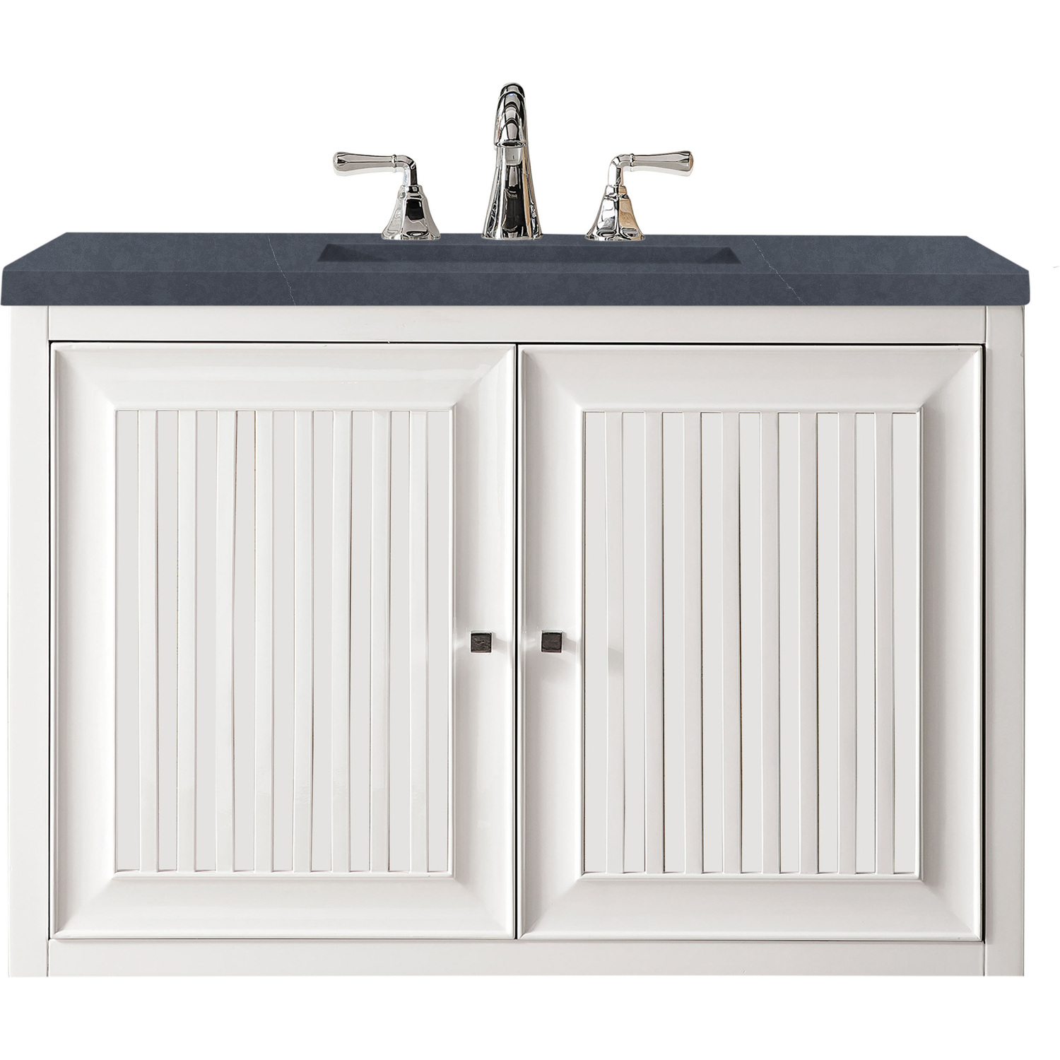 James Martin Athens 36 inch Single Bathroom Vanity, Glossy White w/ 3 CM Charcoal Soapstone Quartz Top E645-V36-GW-3CSP