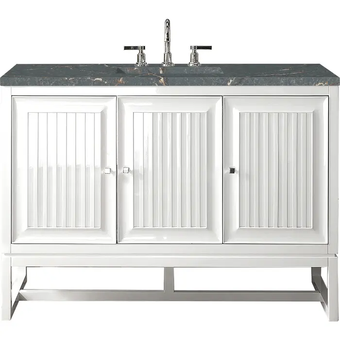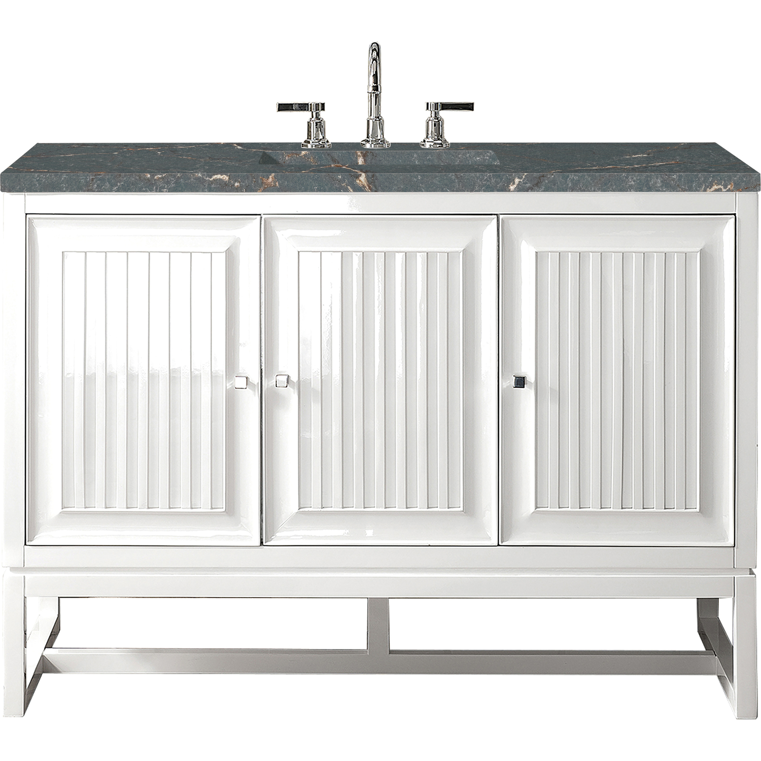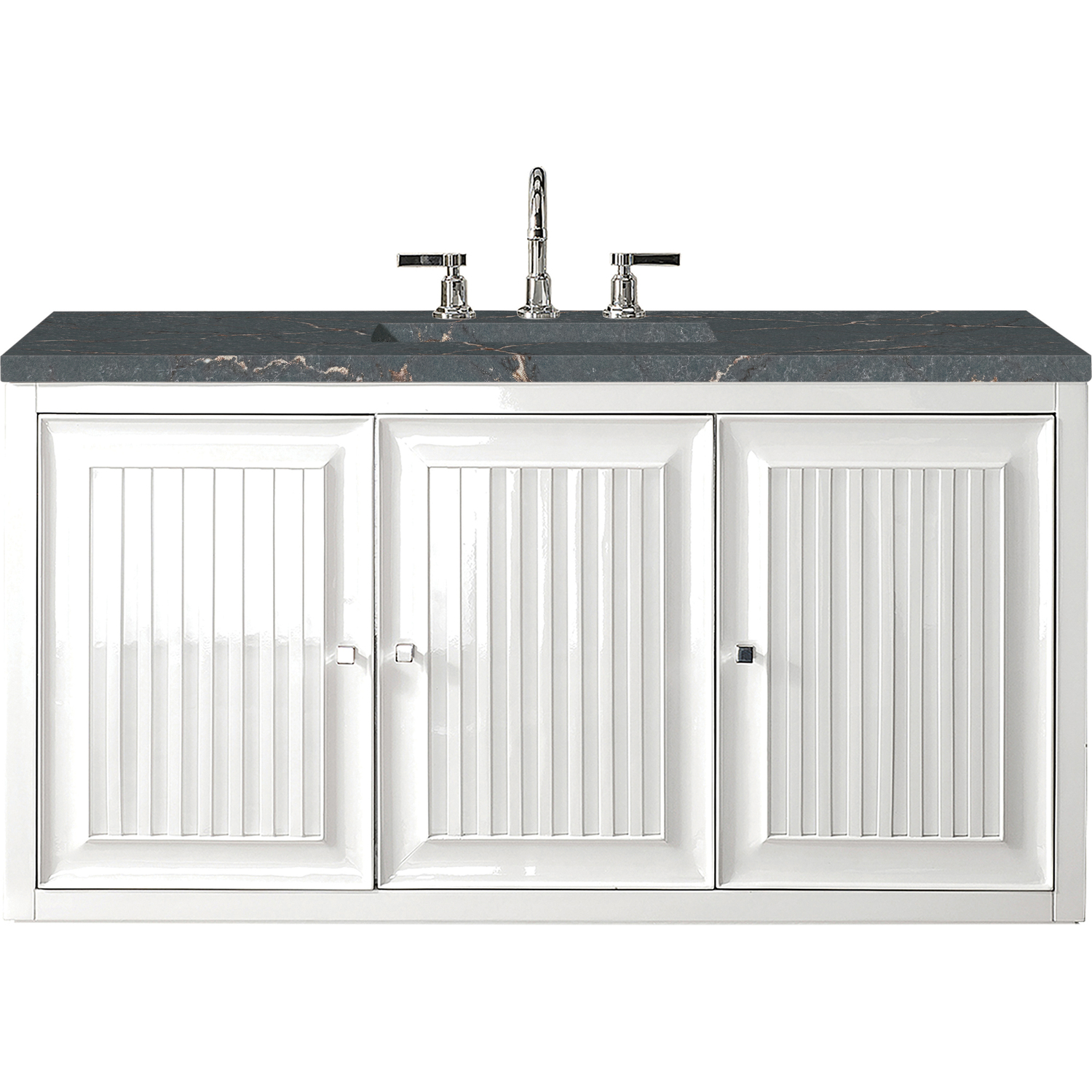James Martin Athens 48 inch Single Vanity, Glossy White w/ 3 CM Parisien Bleu Quartz Top, 840108968679, E645-V48-GW-3PBL