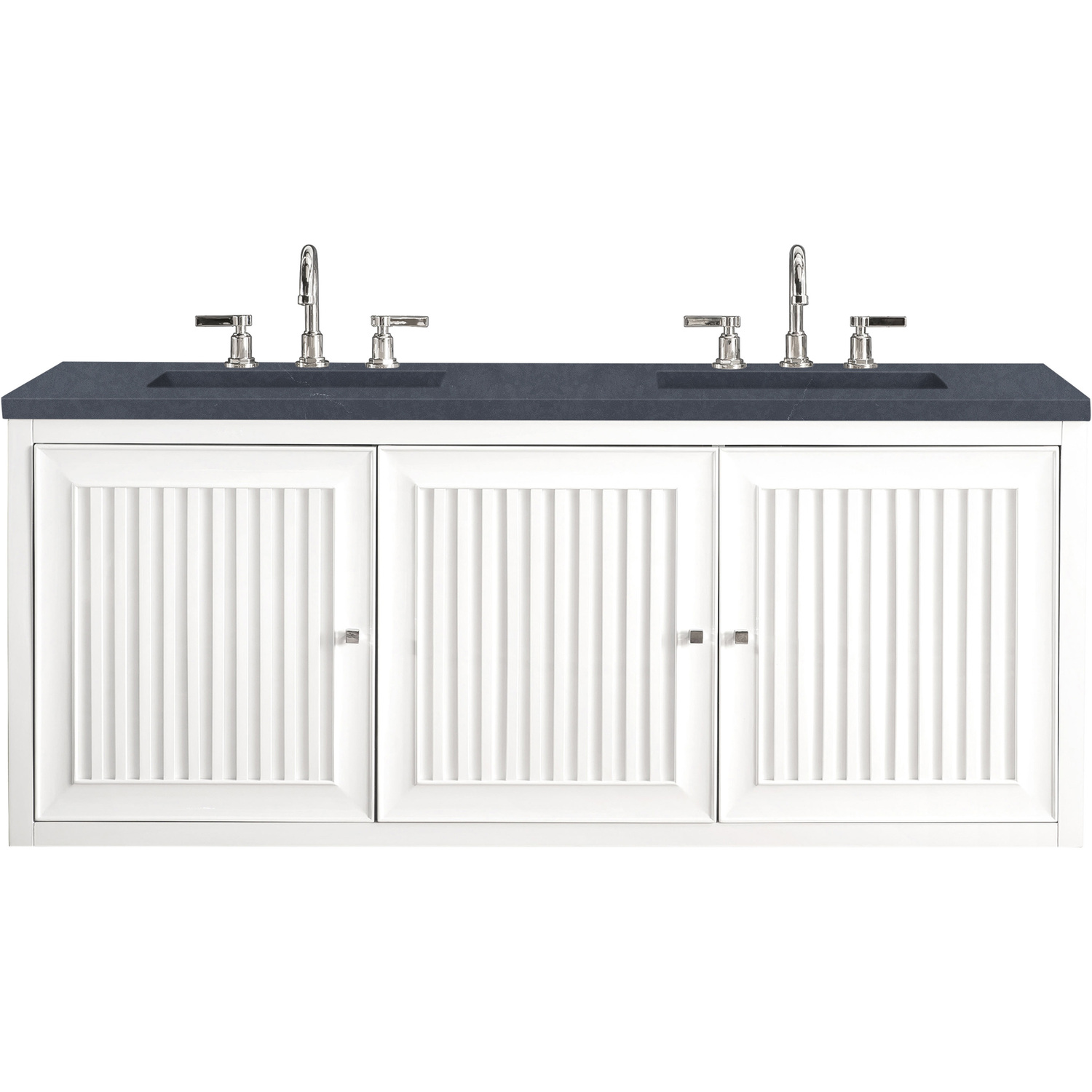 James Martin Athens 60 inch Double Bathroom Vanity, Glossy White w/ 3 CM Charcoal Soapstone Quartz Top E645-V60D-GW-3CSP