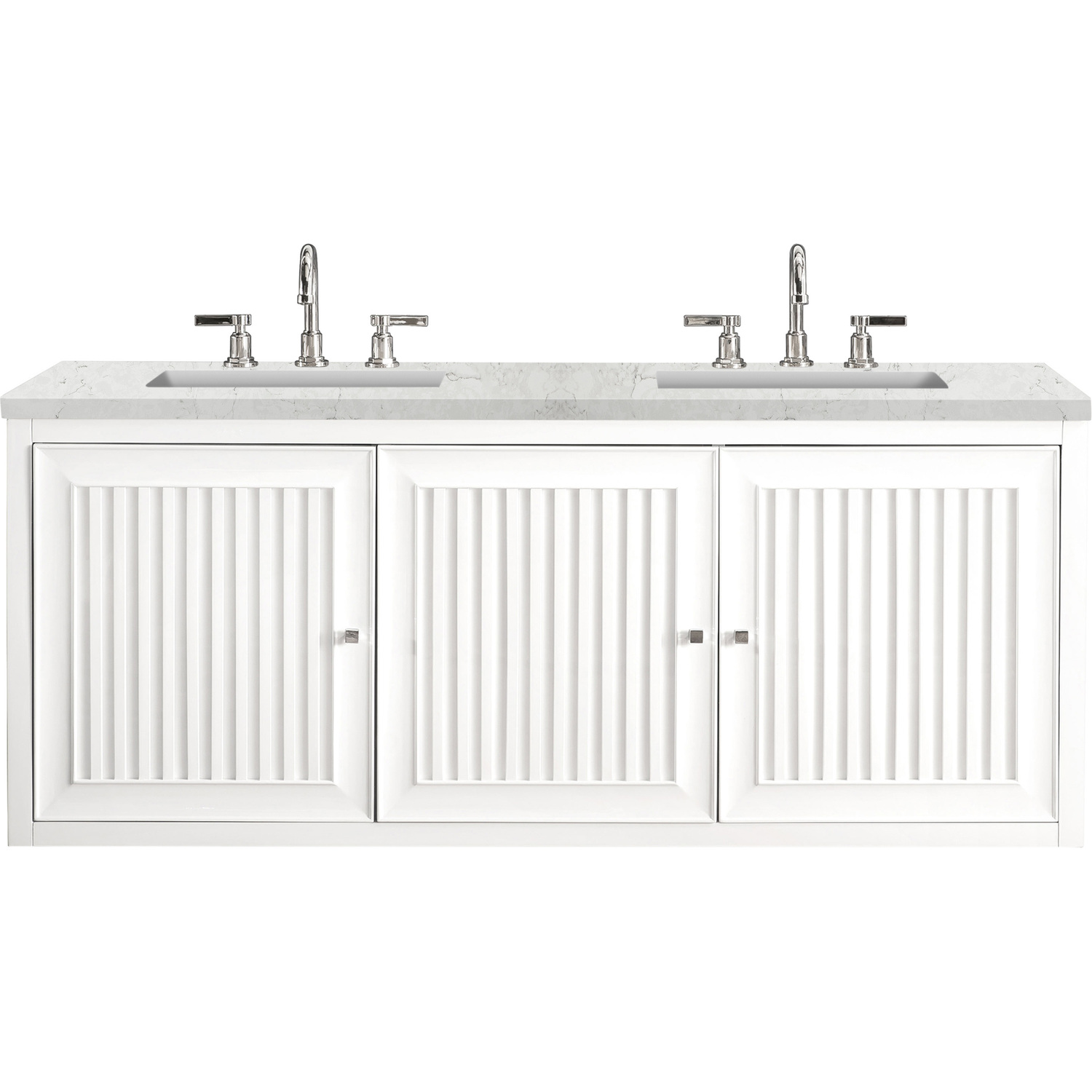 James Martin Athens 60 inch Double Bathroom Vanity, Glossy White w/ 3 CM Eternal Jasmine Pearl Quartz Top E645-V60D-GW-3EJP