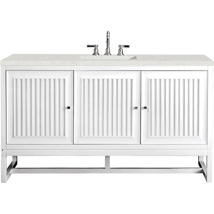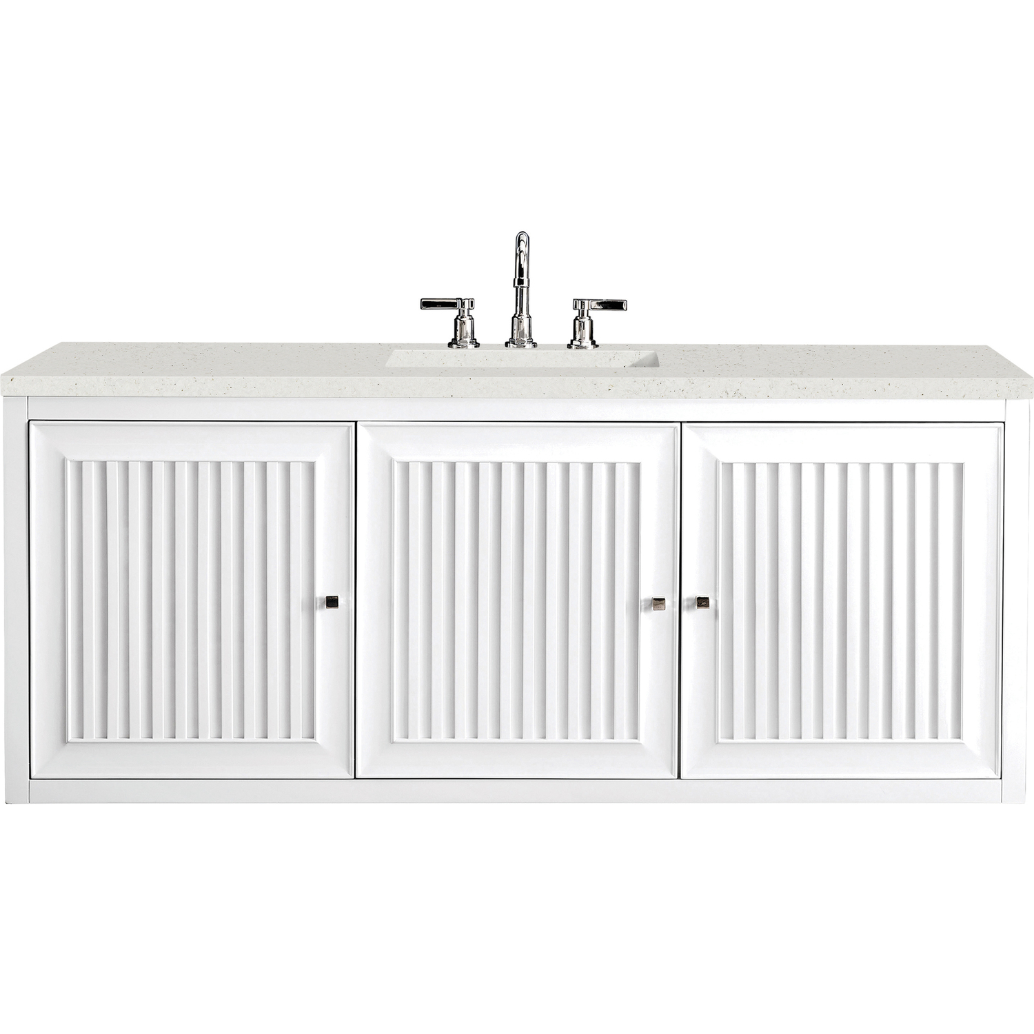 James Martin Athens 60 inch Single Vanity, Glossy White w/ 3 CM Lime Delight Quartz Top, 840108970276, E645-V60S-GW-3LDL