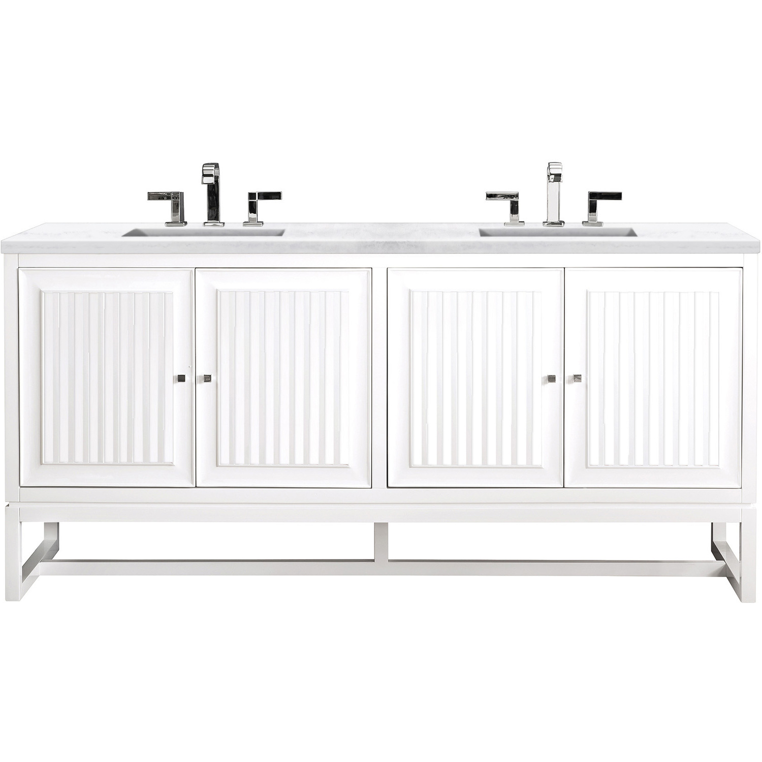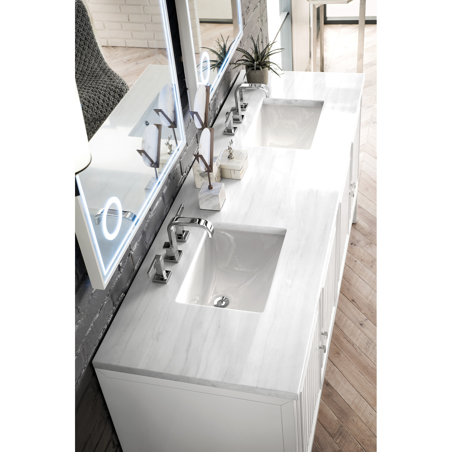 James Martin Athens 72 inch Double Bathroom Vanity, Glossy White w/ 3 CM Arctic Fall Solid Surface Top E645-V72-GW-3AF