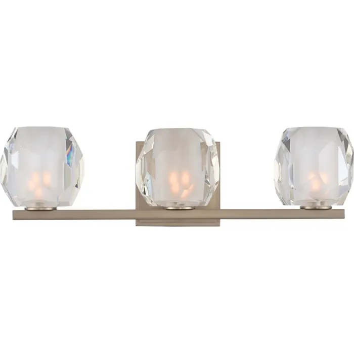 With a faceted clear optic glass and a sleek frosted interior, Regent is featured in a Satin Nickel or Vintage Bronze finish. This Zen design is enhanced with a concealed mounting system to offer a clean design that shows no visible lock up hardware. 3 Light BathG9 LED
