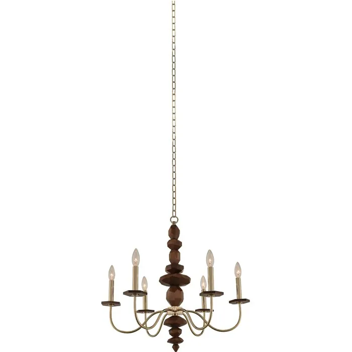 The Lassen collection boast organic shapes that make this truly stunning series. Featured in a champagne gold finish with natural cut wood column and bobeches.6 Light ChandelierE12 Candelabra
