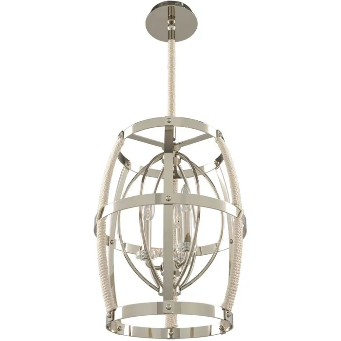 The tight woven light rope details are highlighted with the Polished Nickel Finish to make this collection a the highlight of any setting. Rope wrapped stems keep the design flowing all the way to the ceiling.15" PendantE12 Candelabra