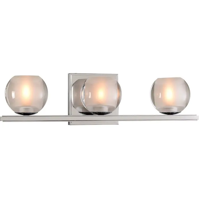 The Corona Collection features Clear Globe Glass Balls with Frosted Interiors. Offered in a Polished Chrome or Satin Nickel finish over heavy gauge steel construction. LED bulbs are included.3 Light BathG9 LED