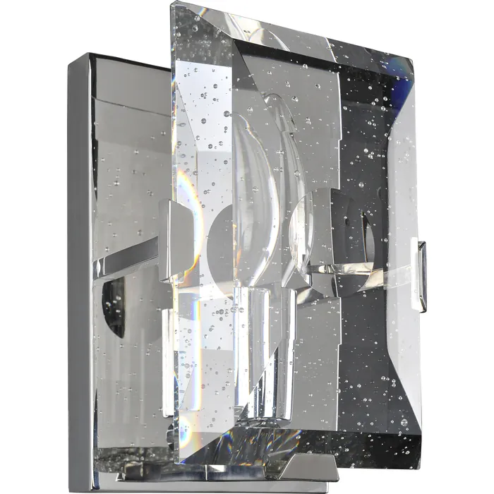 The appeal of the Giada is its double beveled clear bubble crystal panels. The Polished Chrome or Dark Bronze finish lets this jewel shine in any room. Whether trying for a vintage redesign of your home or updating to a more modern look, the Giada Collection from Kalco Lighting presents you with many opportunities. Try it in the bedroom for a dramatic effect or add a splash of elegance with a pendant over the dining room table. Soft light reflects off crystal panels for a dazzling style to set the tone of the room.ADA Wall SconceE12 Candelabra