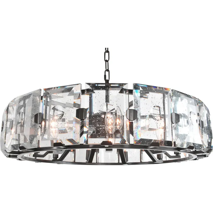 The appeal of the Giada is its double beveled clear bubble crystal panels. The Polished Chrome or Dark Bronze finish lets this jewel shine in any room. Whether trying for a vintage redesign of your home or updating to a more modern look, the Giada Collection from Kalco Lighting presents you with many opportunities. Try it in the bedroom for a dramatic effect or add a splash of elegance with a pendant over the dining room table. Soft light reflects off crystal panels for a dazzling style to set the tone of the room.30" PendantE12 Candelabra