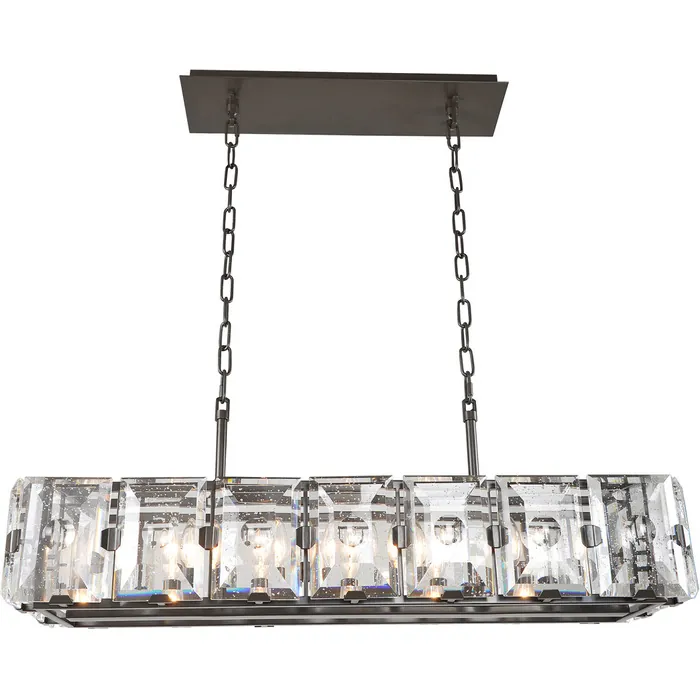 The appeal of the Giada is its double beveled clear bubble crystal panels. The Polished Chrome or Dark Bronze finish lets this jewel shine in any room. Whether trying for a vintage redesign of your home or updating to a more modern look, the Giada Collection from Kalco Lighting presents you with many opportunities. Try it in the bedroom for a dramatic effect or add a splash of elegance with a pendant over the dining room table. Soft light reflects off crystal panels for a dazzling style to set the tone of the room.37" IslandE12 Candelabra