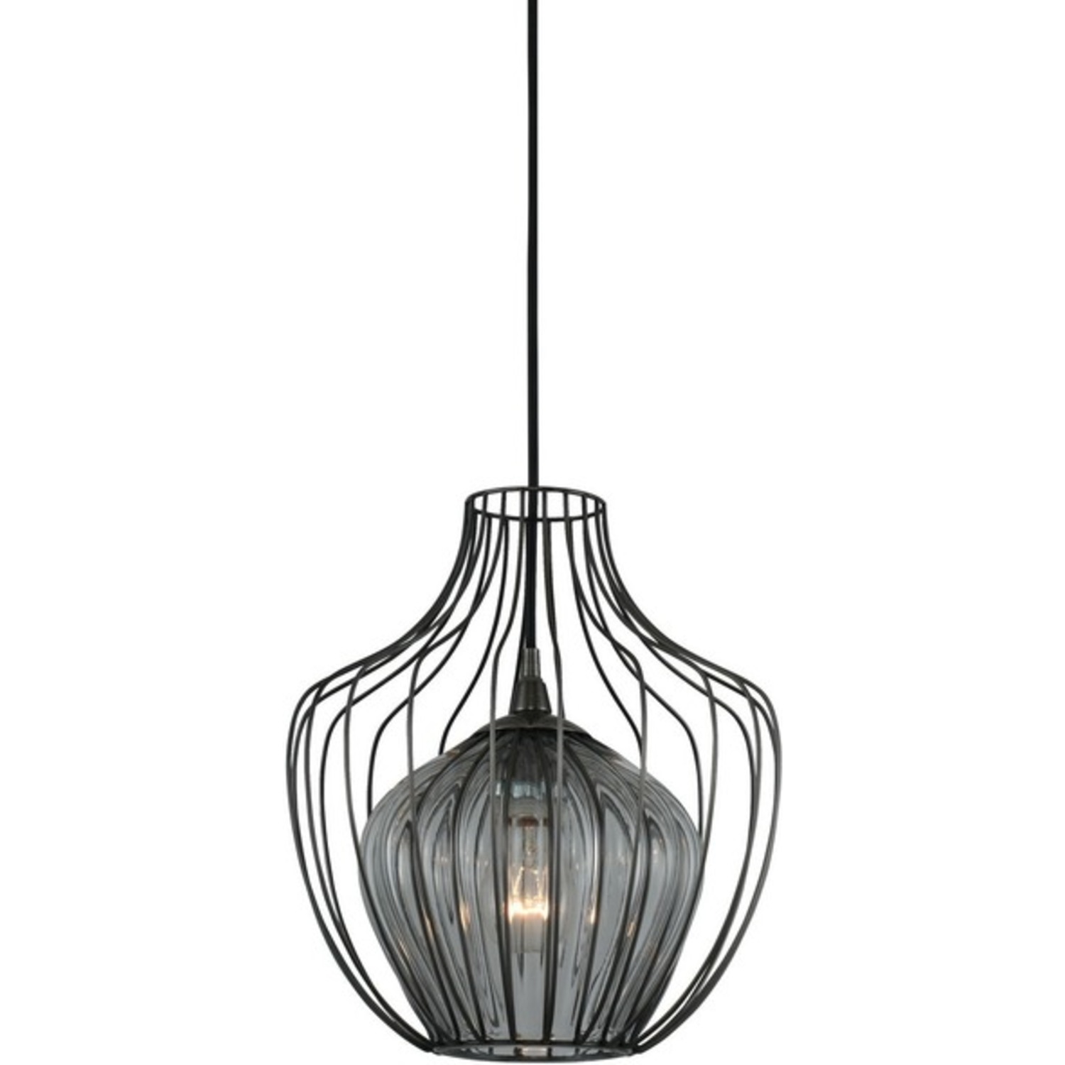 Crafted with versatility in mind, this Indoor/Outdoor collection features an edgy Chemical Stainless Steel finish, double cage design and clear, imprisoned hand blown glass12" PendantE26 Medium