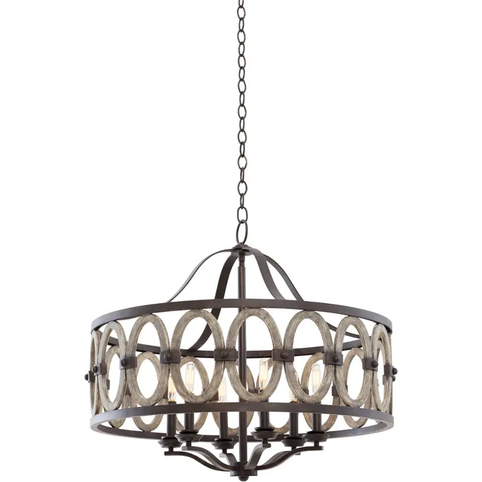 As a sconce, flush mount or foyer center piece, the wrought iron paired with the painted drift wood accents of the Belmont line allows for style in any situation. Charming drift wood painted ovals and sturdy, hand-forged wrought iron come together for an intriguing juxtaposition of materials and colors. A perfect accent for any room, the intricate detail of the drift wood finish will enrich your home decor. Robust, rustic and rich in elegance,the Belmont suits all decoration styles.28.5" PendantE12 Candelabra