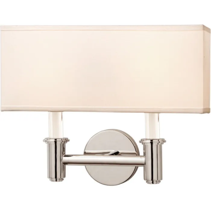 The Dupont Collection is offered in a Polished Chrome finish with Off-White Silk shades, a bottom diffuser and Optic Crystal Accents.2 Light Wall BracketE12 Candelabra
